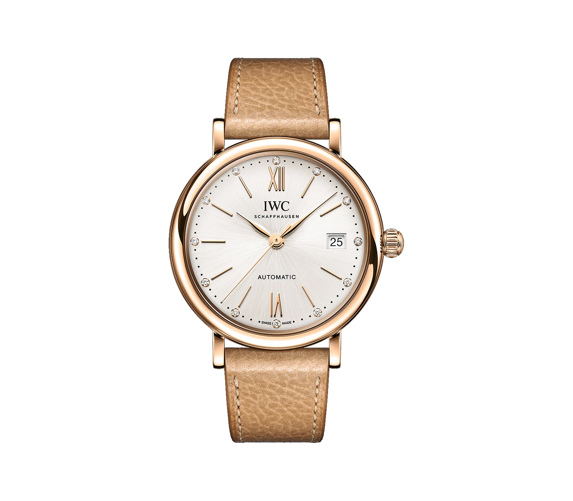 37mm Rose Gold Silver Plated Diamond Dial On Beige Strap