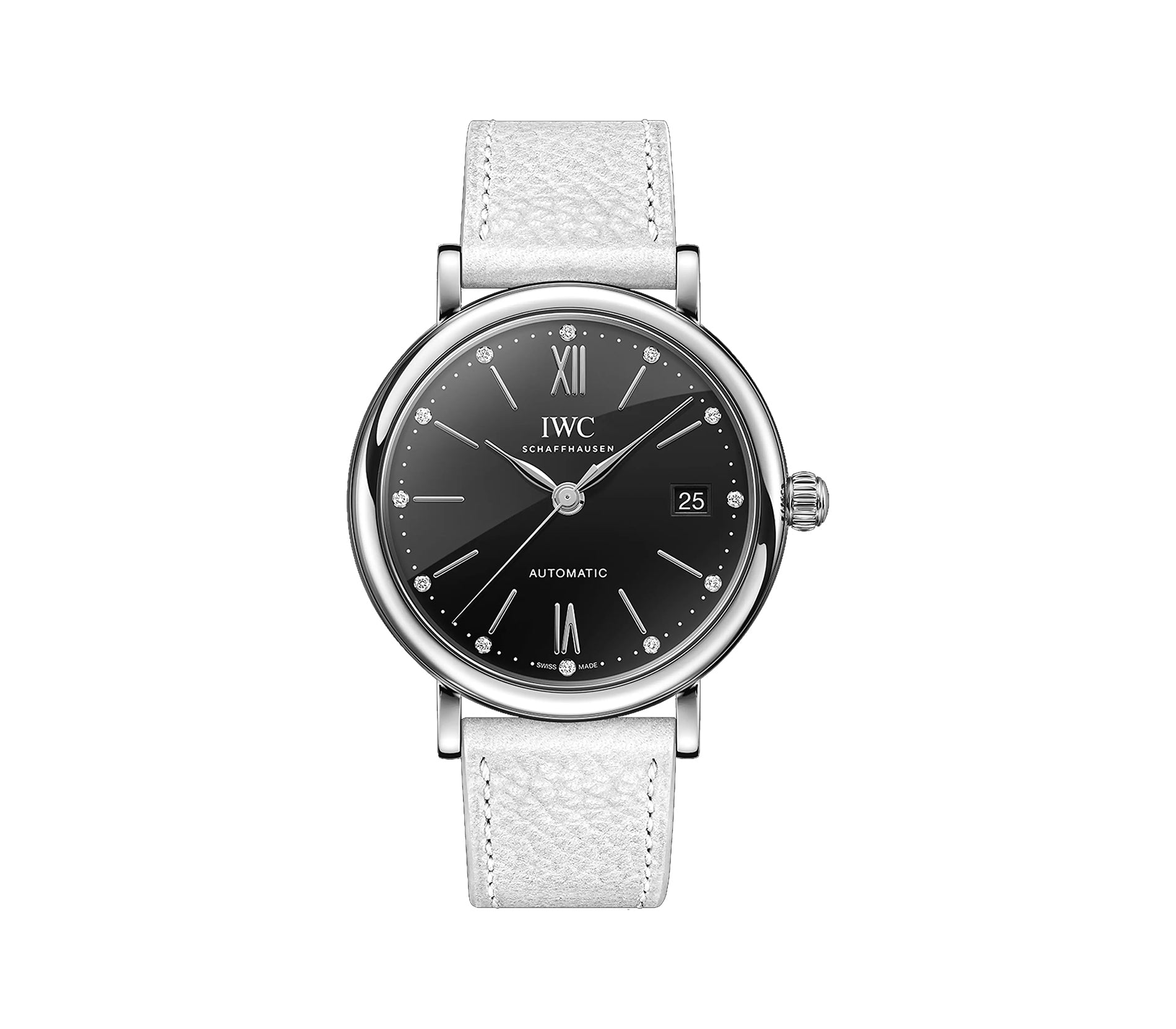 37mm Stainless Steel Black Diamond Dial On White Strap