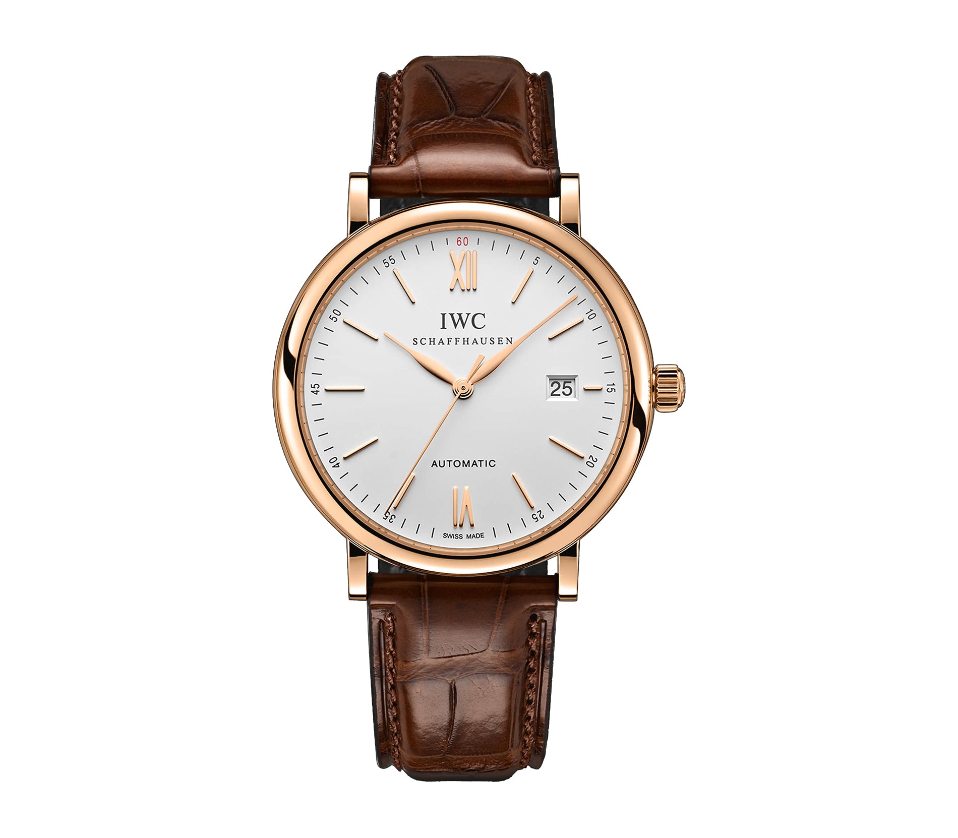 40mm 18k Rose Gold Silver Dial On Dark Brown Strap
