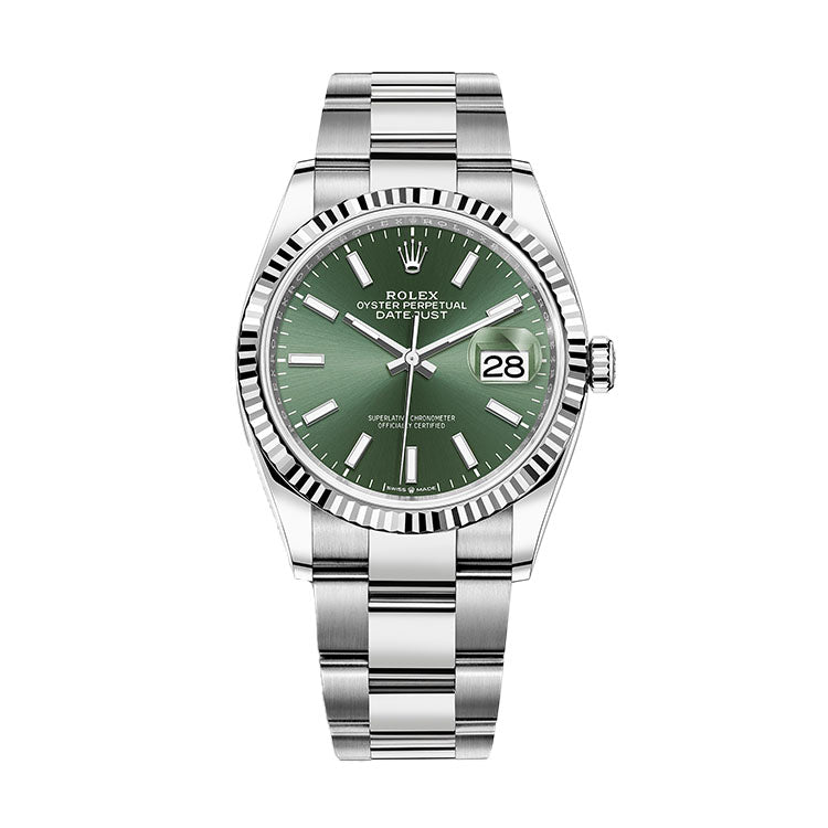 36mm Steel Mint Green Index Dial 18k Fluted Bezel Oyster Bracelet