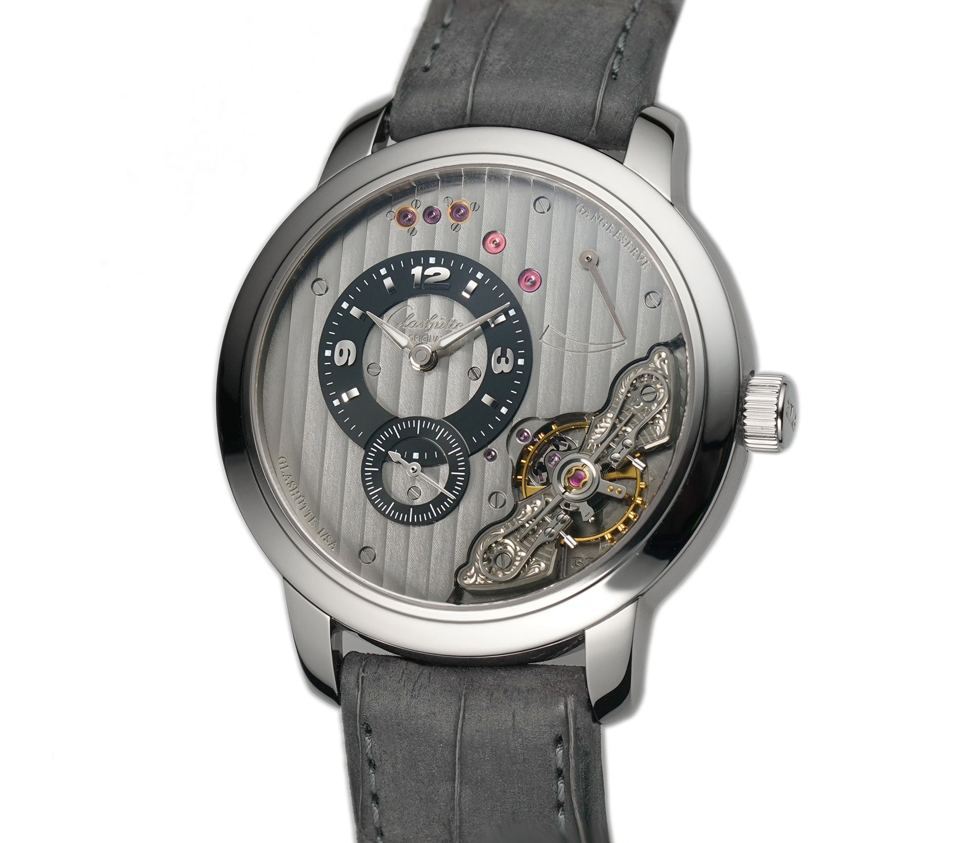40mm PanoReserve Grey Dial Grey Leather Strap