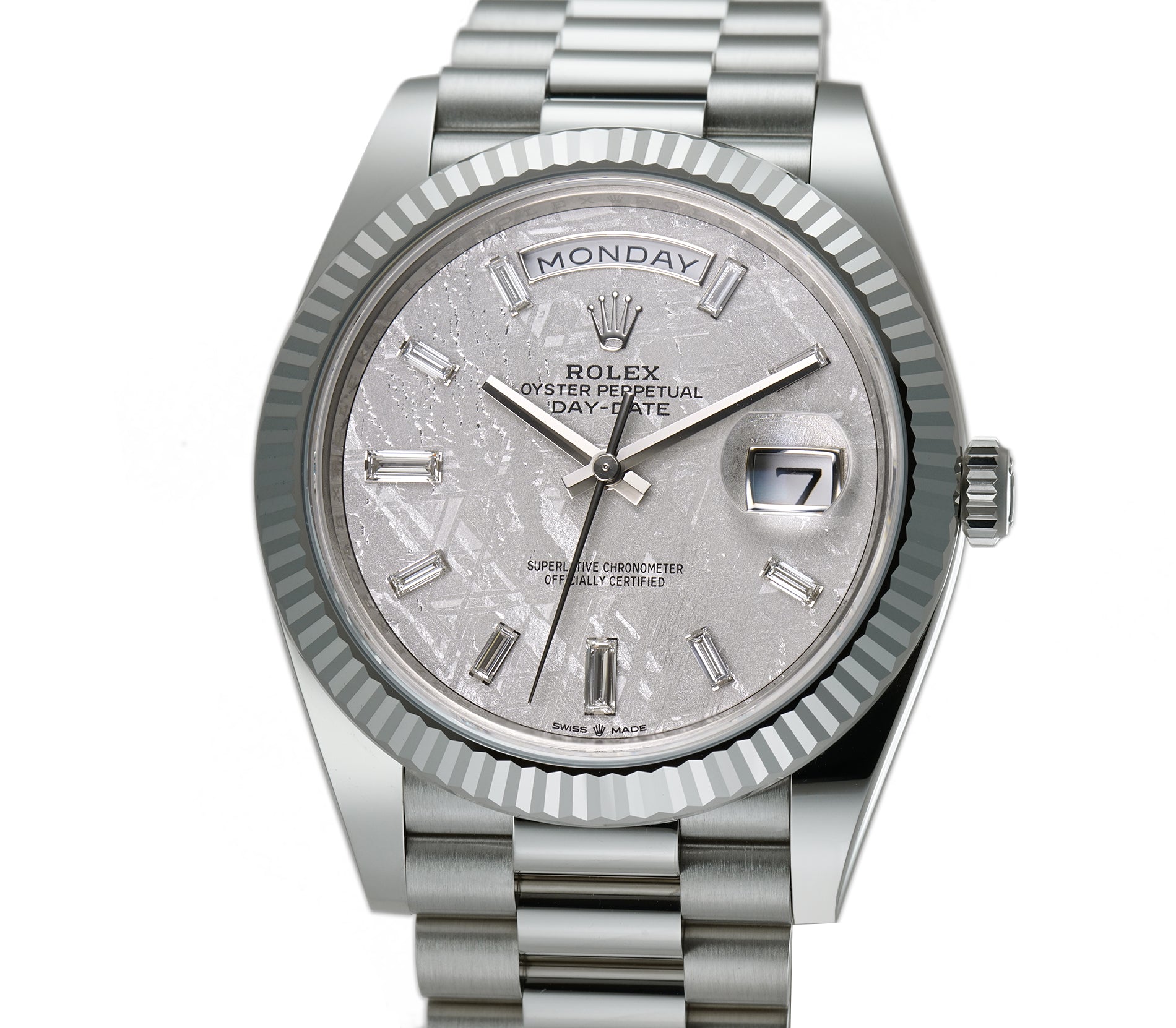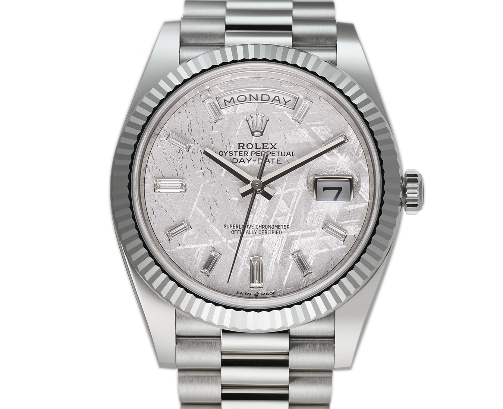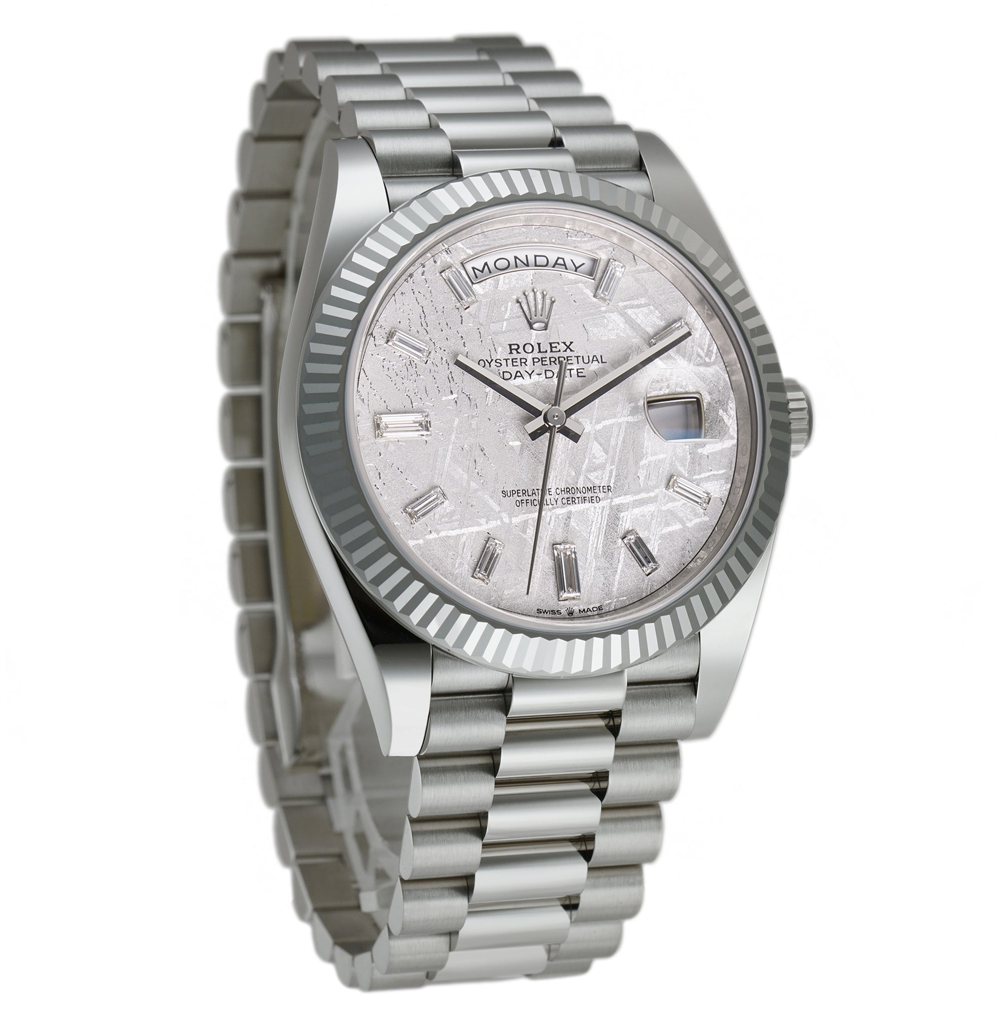 40mm 18k White Gold President Meteorite Baguette Diamond Dial