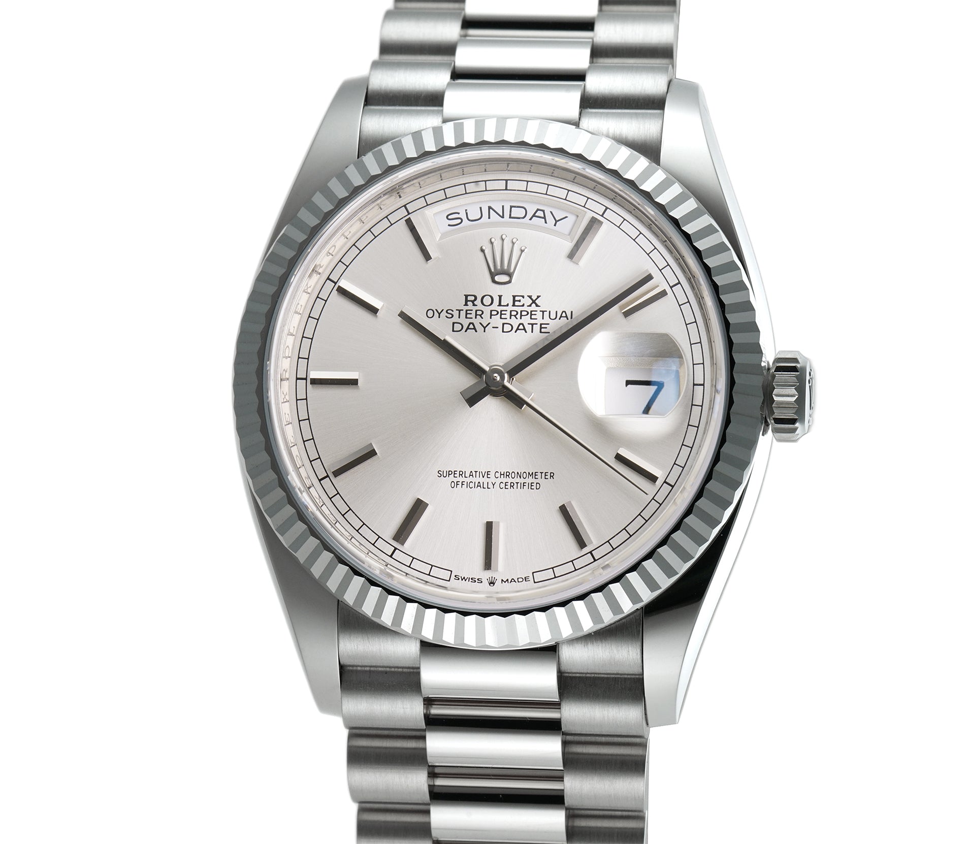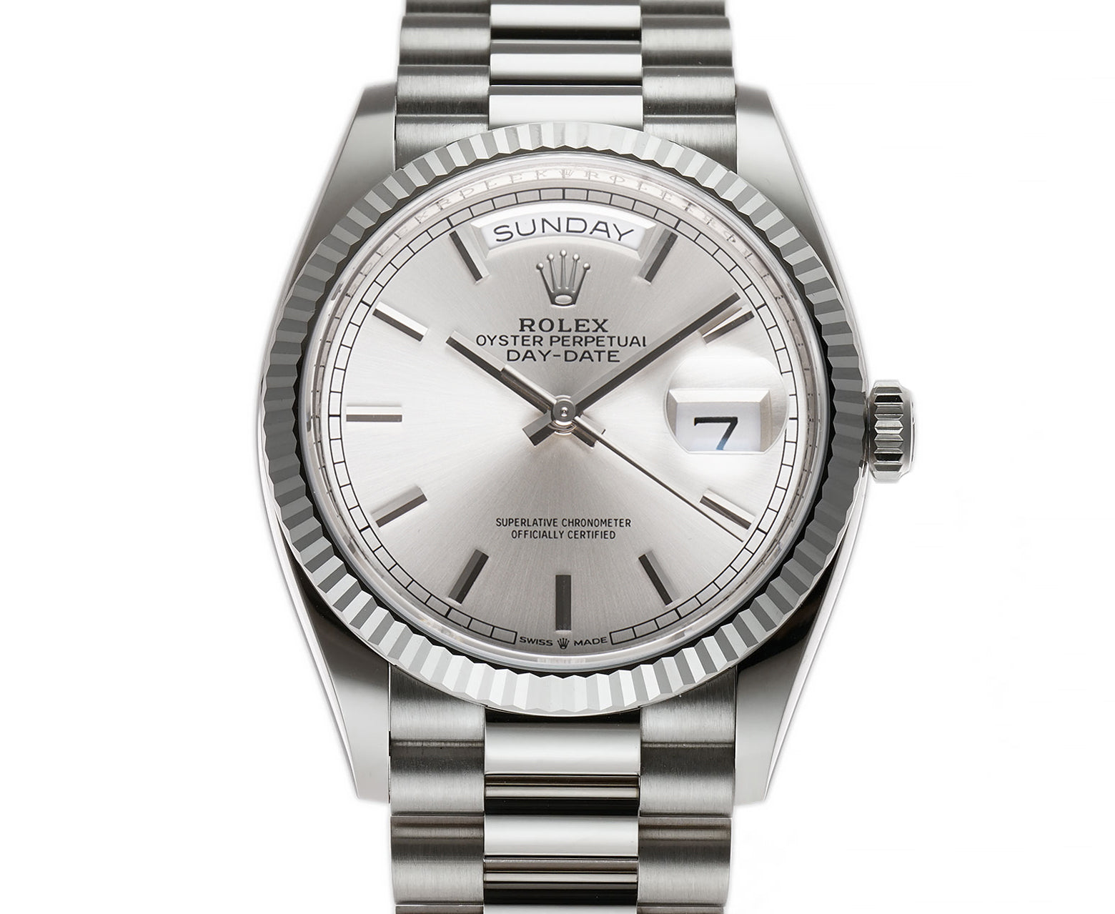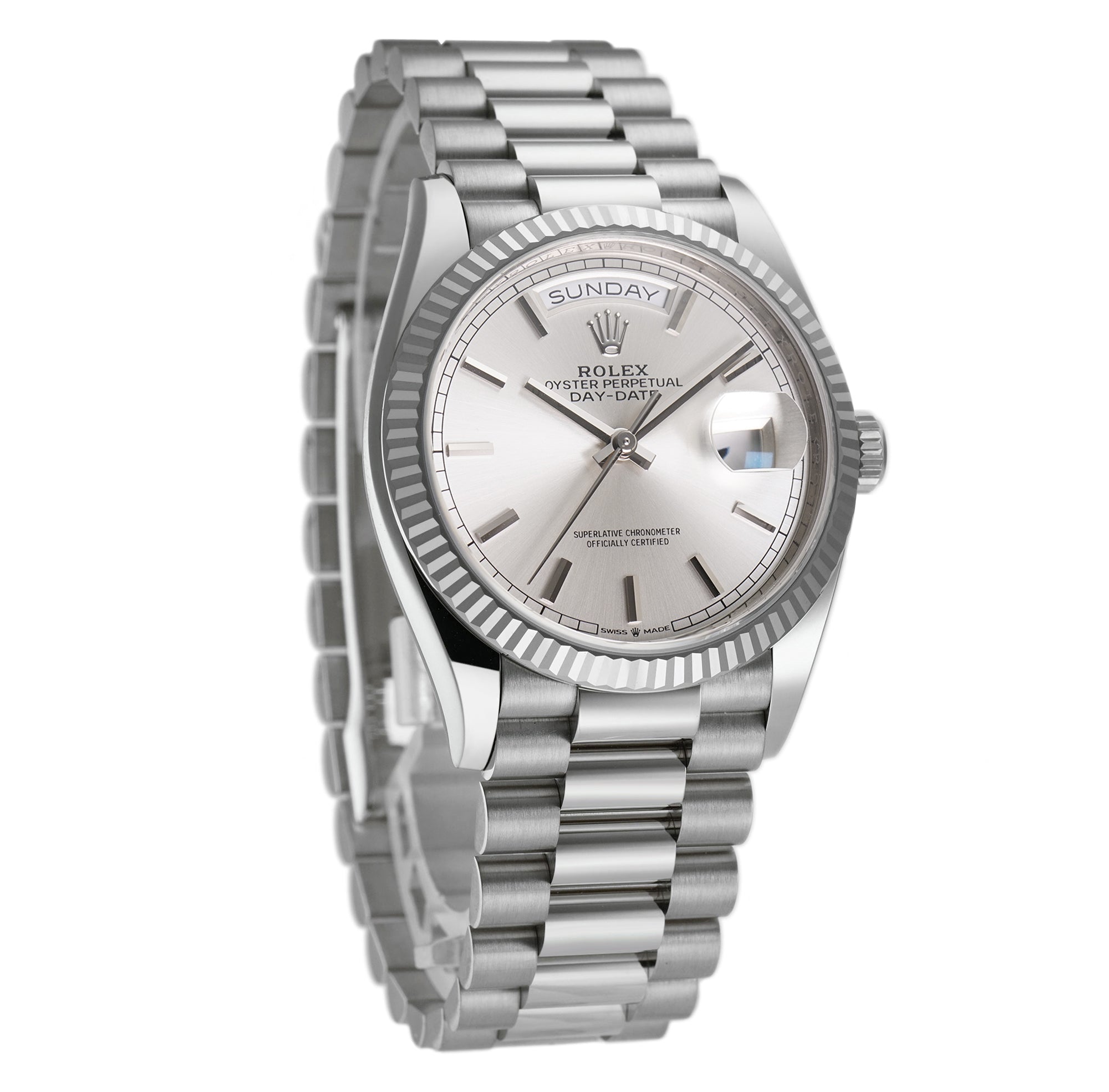 36mm 18k White Gold President Silver Index Dial