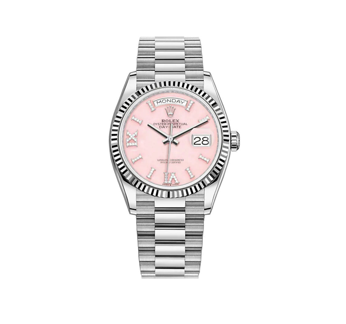 36mm 18k White Gold President Pink Opal Diamond Dial
