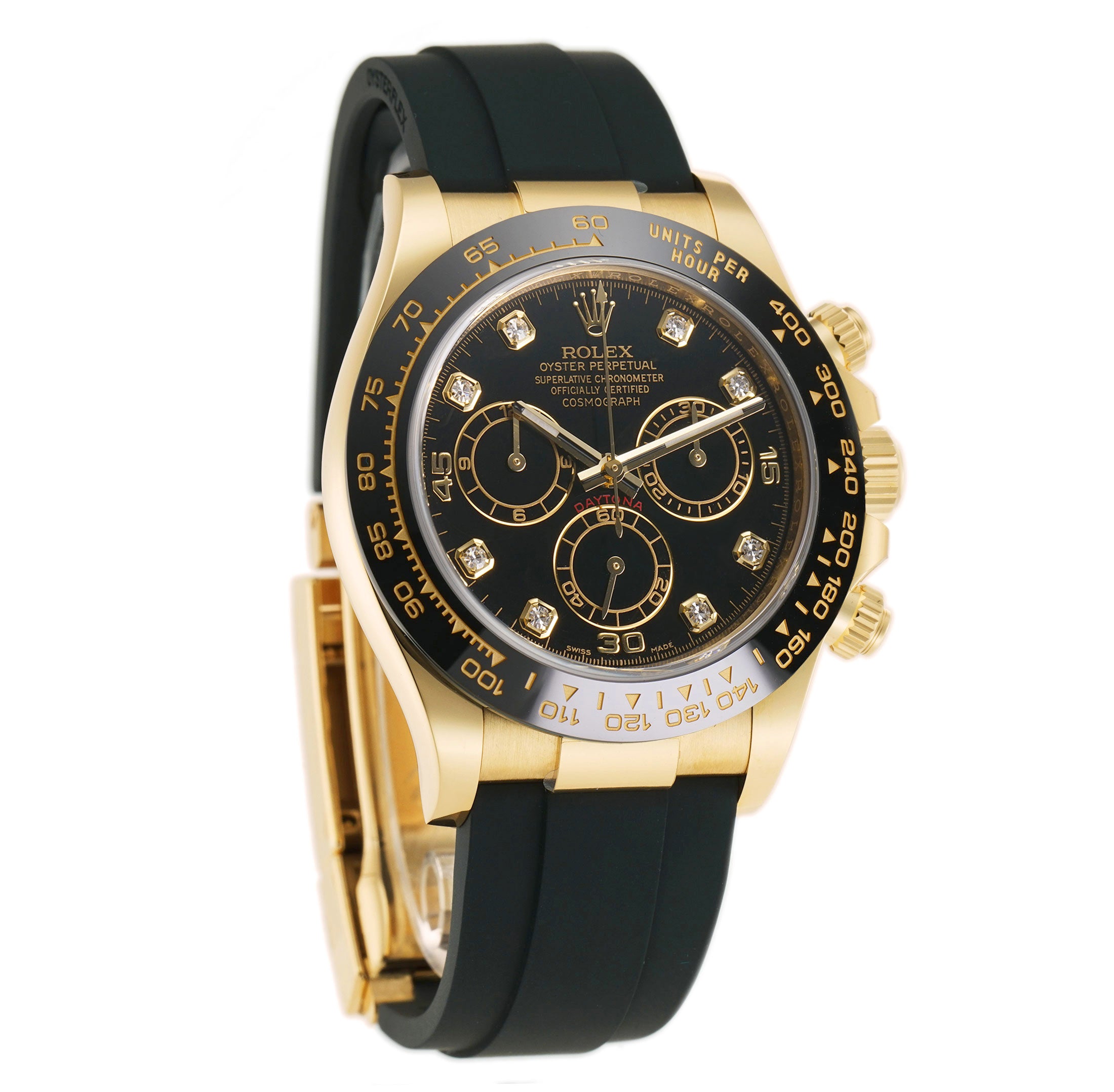 40mm 18k Yellow Gold Ceramic Bezel Black Diamond Dial Oysterflex