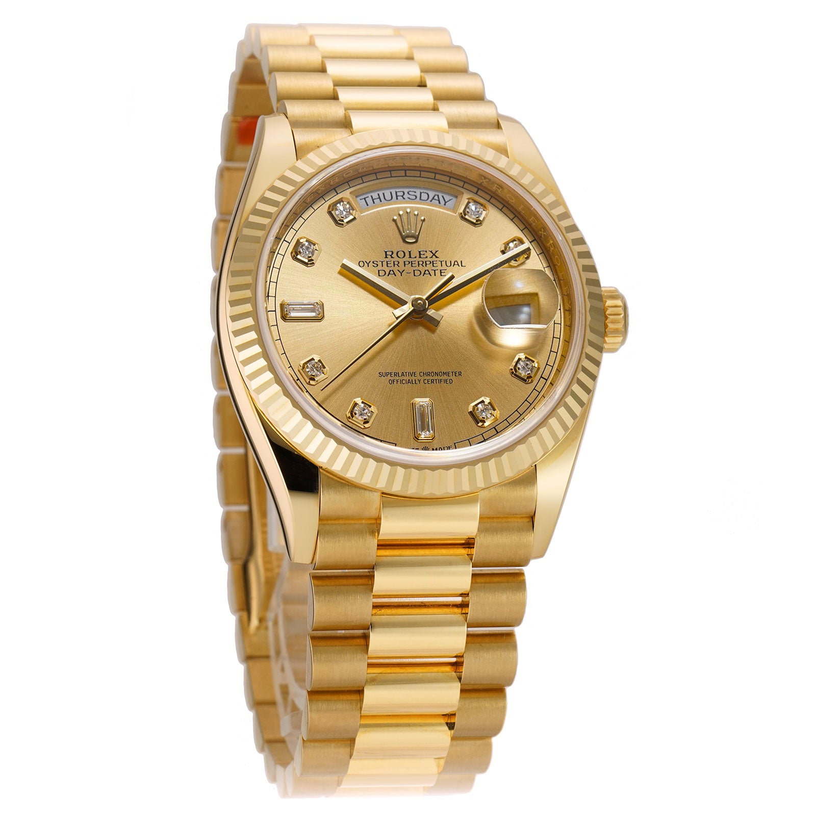 36mm 18k Yellow Gold President Champagne Diamond Dial