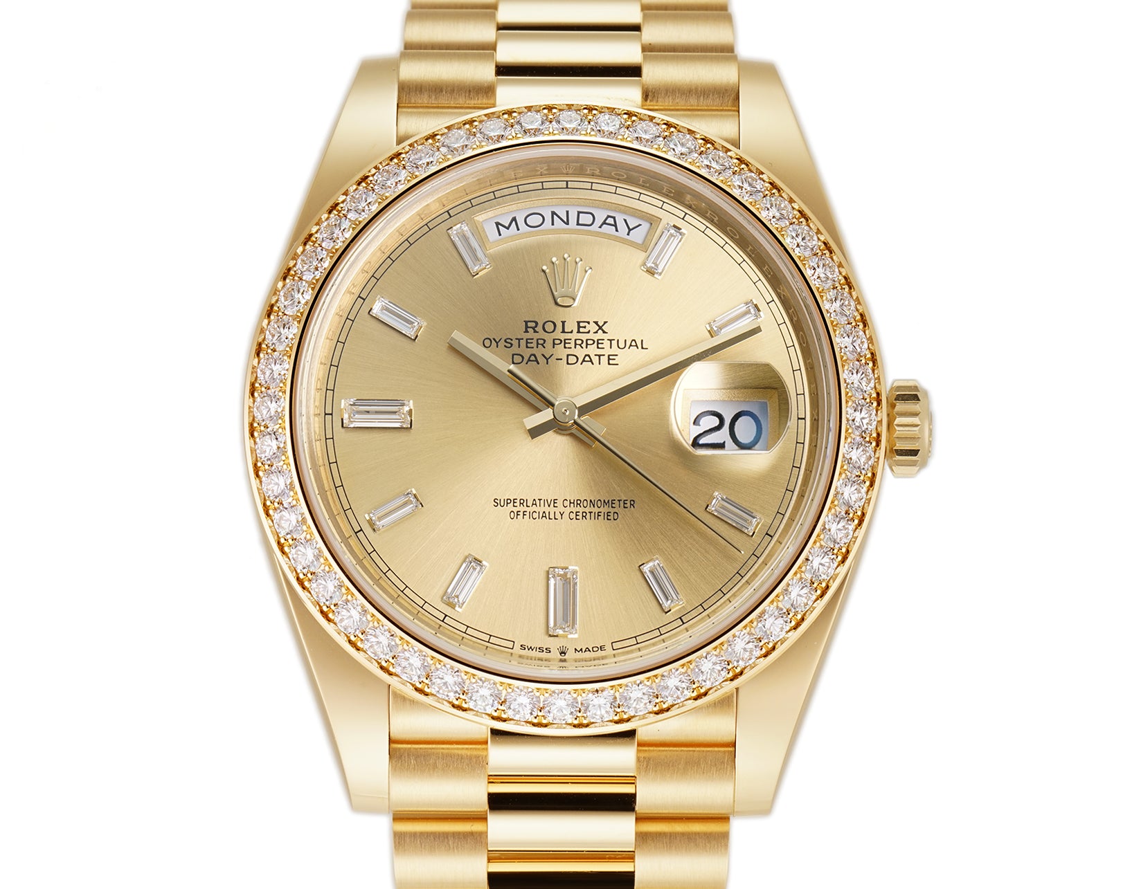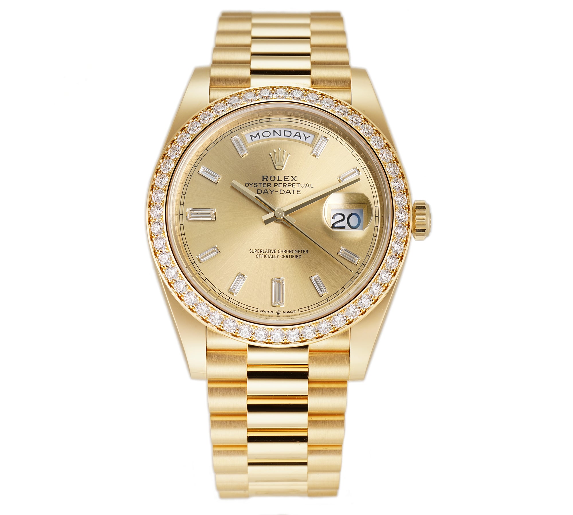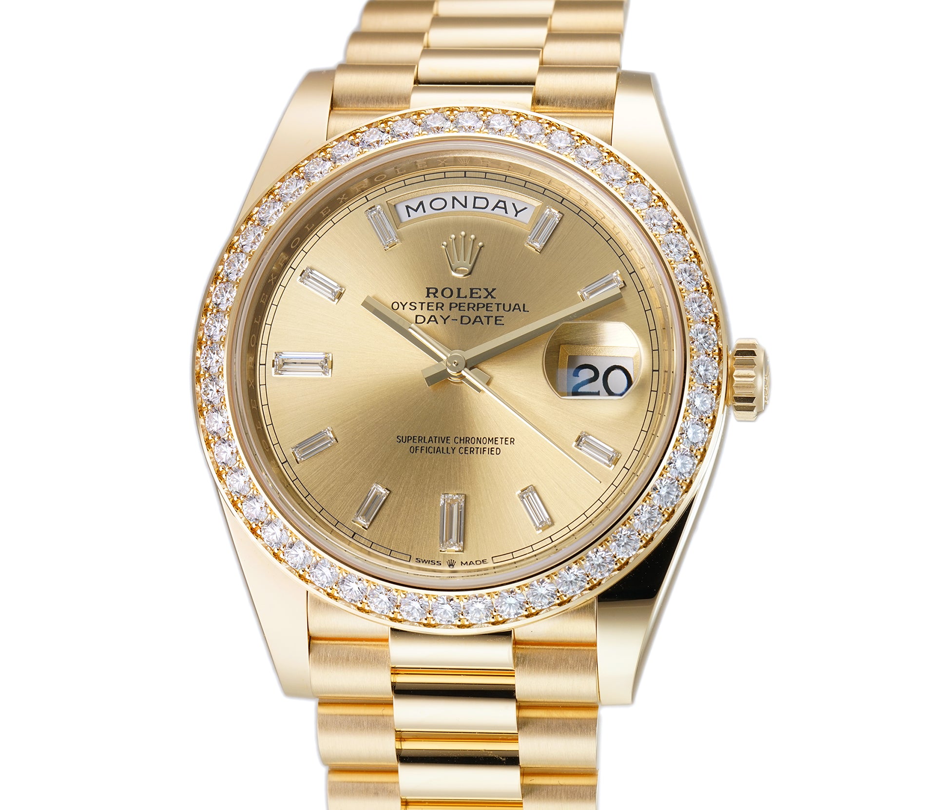 40mm 18k Yellow Gold President Diamond Bezel Champagne Baguette Diamond Dial