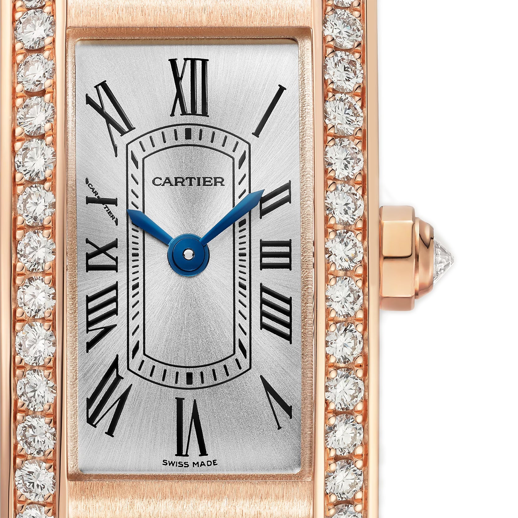 19mm Small Tank Americaine 18k Rose Gold Diamond Bezel Quartz