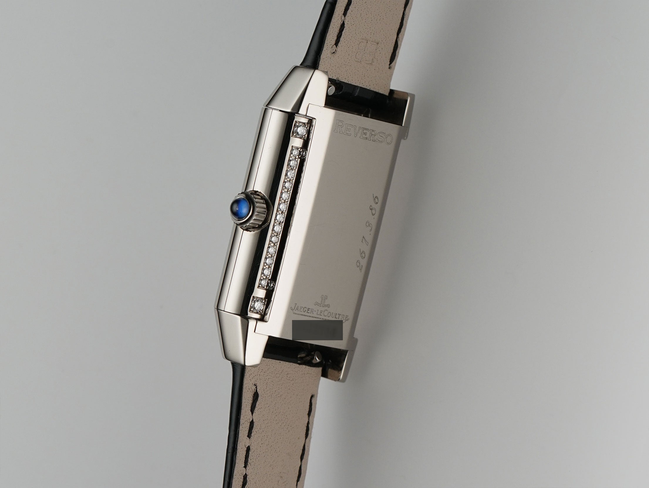This ladies Reverso 267.3.86 is in excellent condition for a previously enjoyed watch. The JLC engravings on the case back are crisp, which implies the watch was seldom worn. The case does have areas of mirror-like finish which are prone to hairlines (marks visible when with high resolution cameras or if angled at certain lighting). Pictures are part of the description so please refer to the pictures in determining the condition, pictures are of the exact watch being offered.