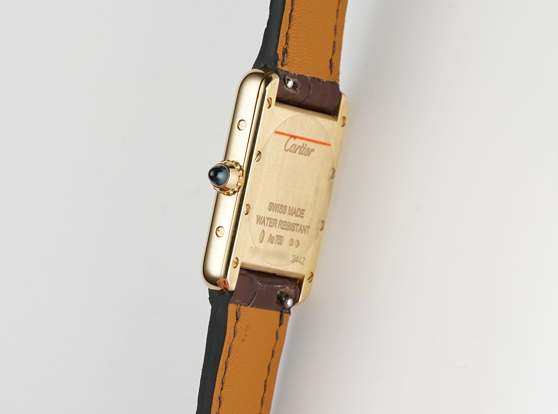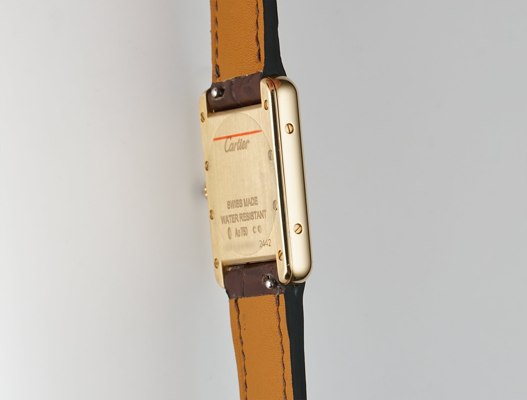 This ladies Tank Louis in a 22mm case is in excellent condition for a previously owned piece. The case does have areas of mirror-like finish which are prone to hairlines (marks visible when with high resolution cameras or if angled at certain lighting). Pictures are part of the description so please refer to the pictures in determining the condition, pictures are of the exact watch being offered.