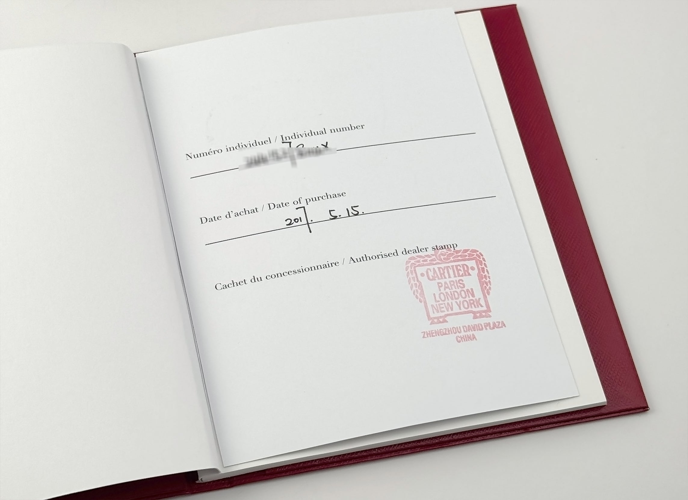 Included with the watch are original Cartier box and papers (initially dated in 2017).