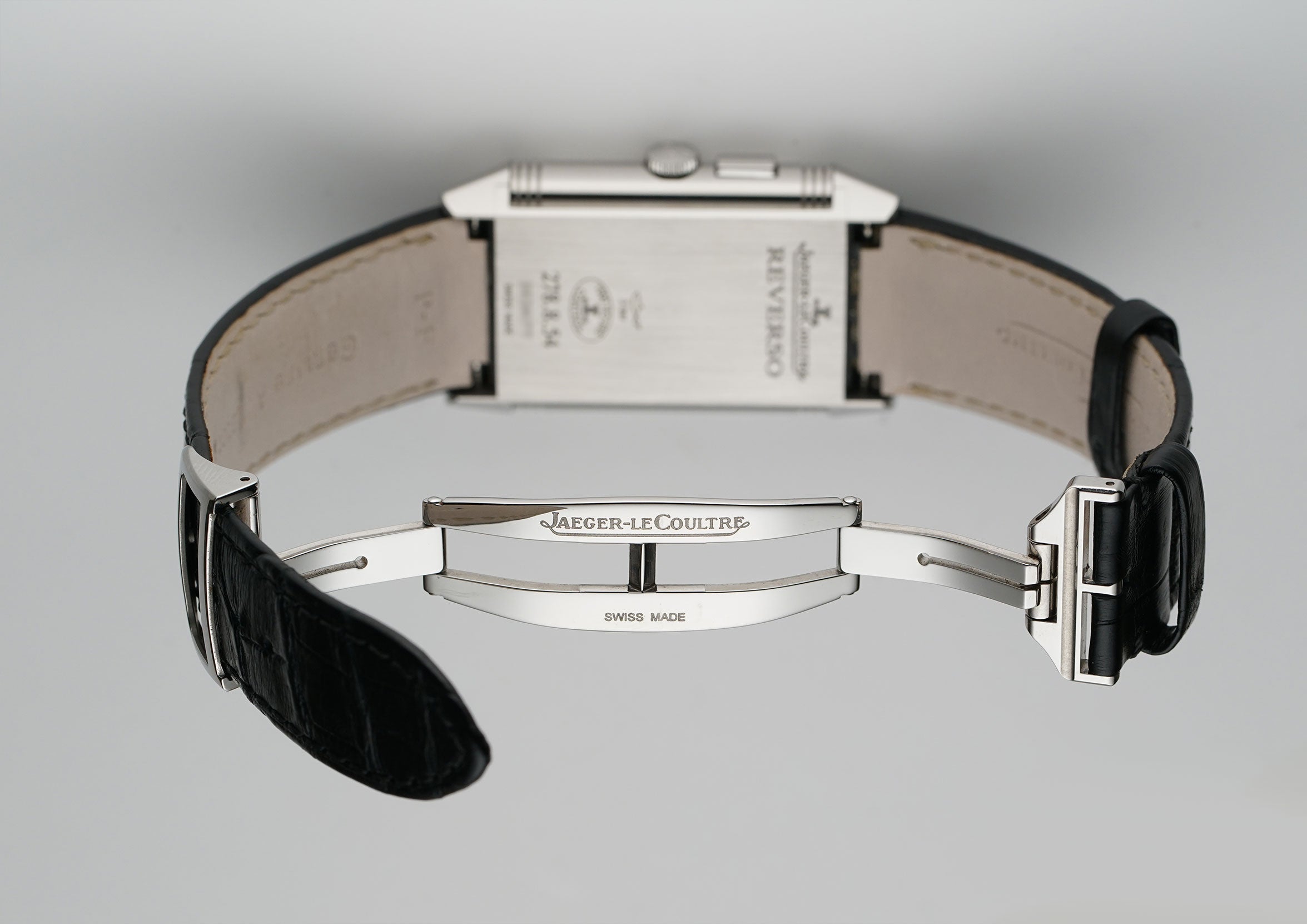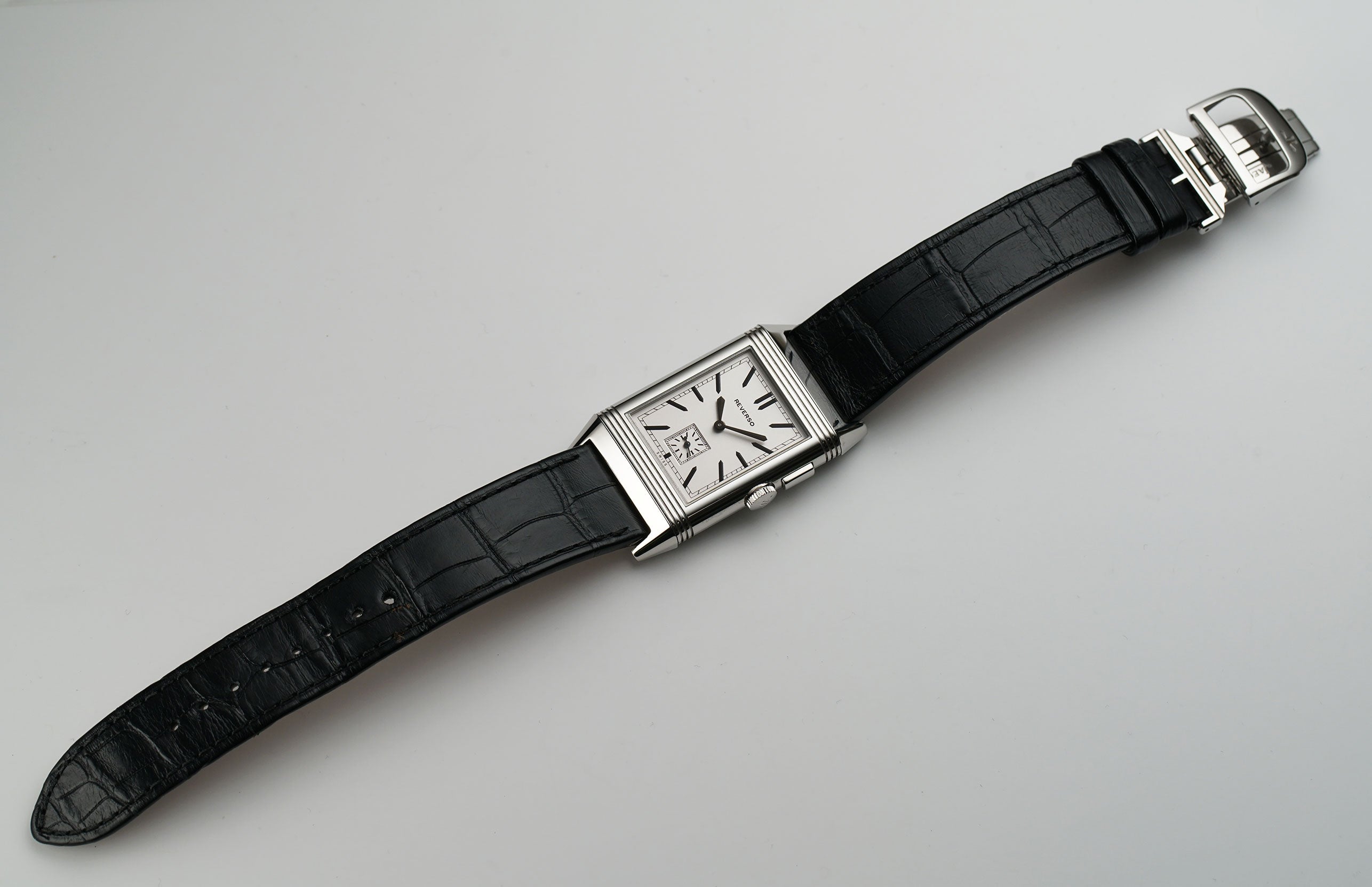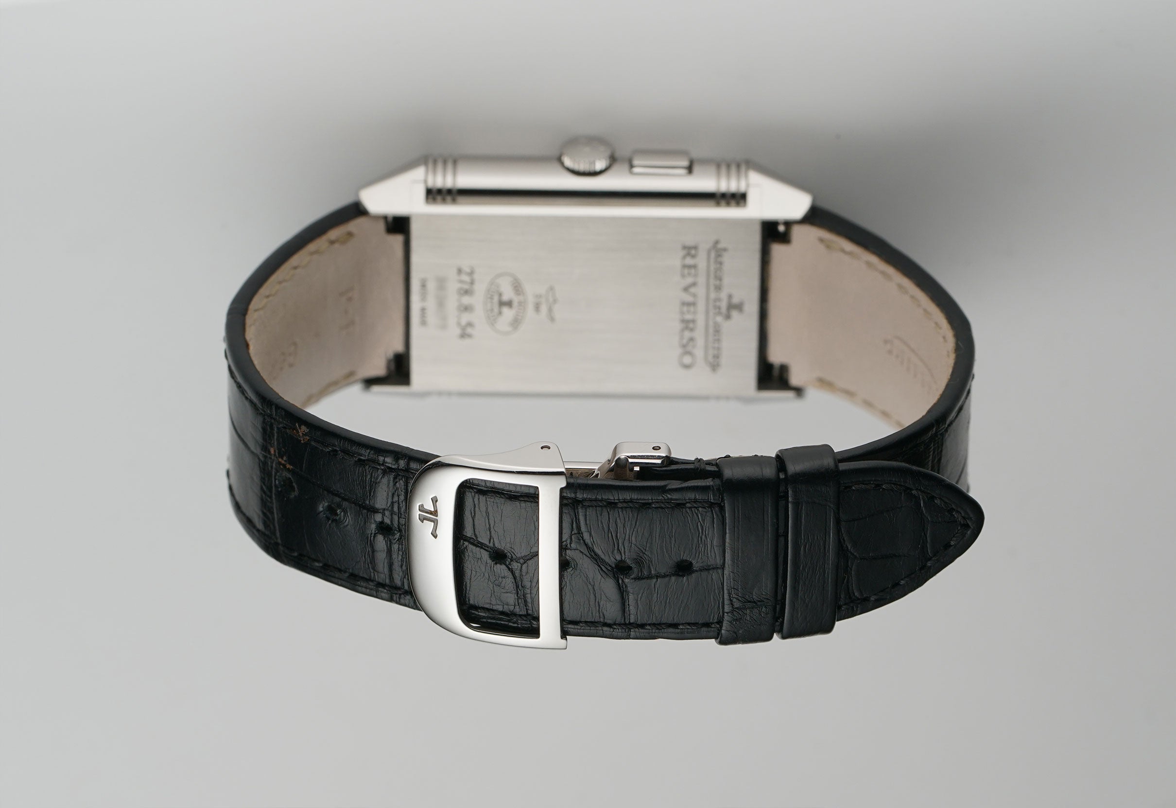 The condition of this Grande Reverso Night and Day 278.8.54 is in impressive condition, carefully worn throughout the years. The case does have areas of mirror-like finish which are prone to hairlines (marks visible when with high resolution cameras or if angled at certain lighting). Pictures are part of the description so please refer to the pictures in determining the condition, pictures are of the exact watch being offered.
