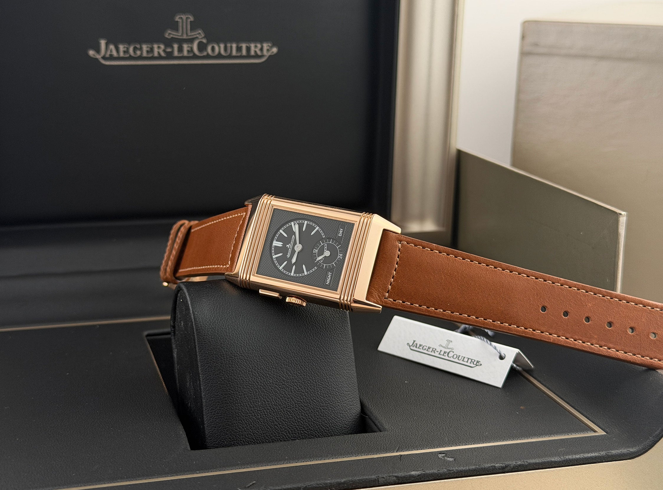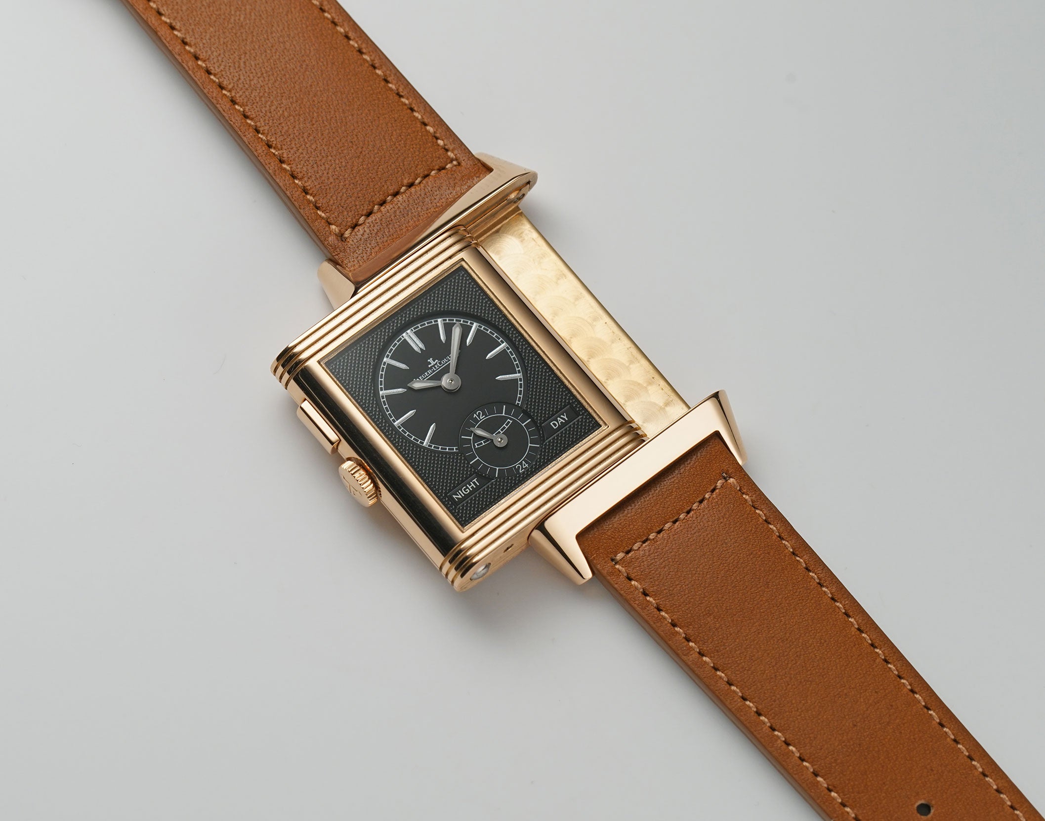 This Grande Reverso Night and Day 278.2.54 is in impressive condition, carefully worn throughout the years. The case does have areas of mirror-like finish which are prone to hairlines (marks visible when with high resolution cameras or if angled at certain lighting). Pictures are part of the description so please refer to the pictures in determining the condition, pictures are of the exact watch being offered.