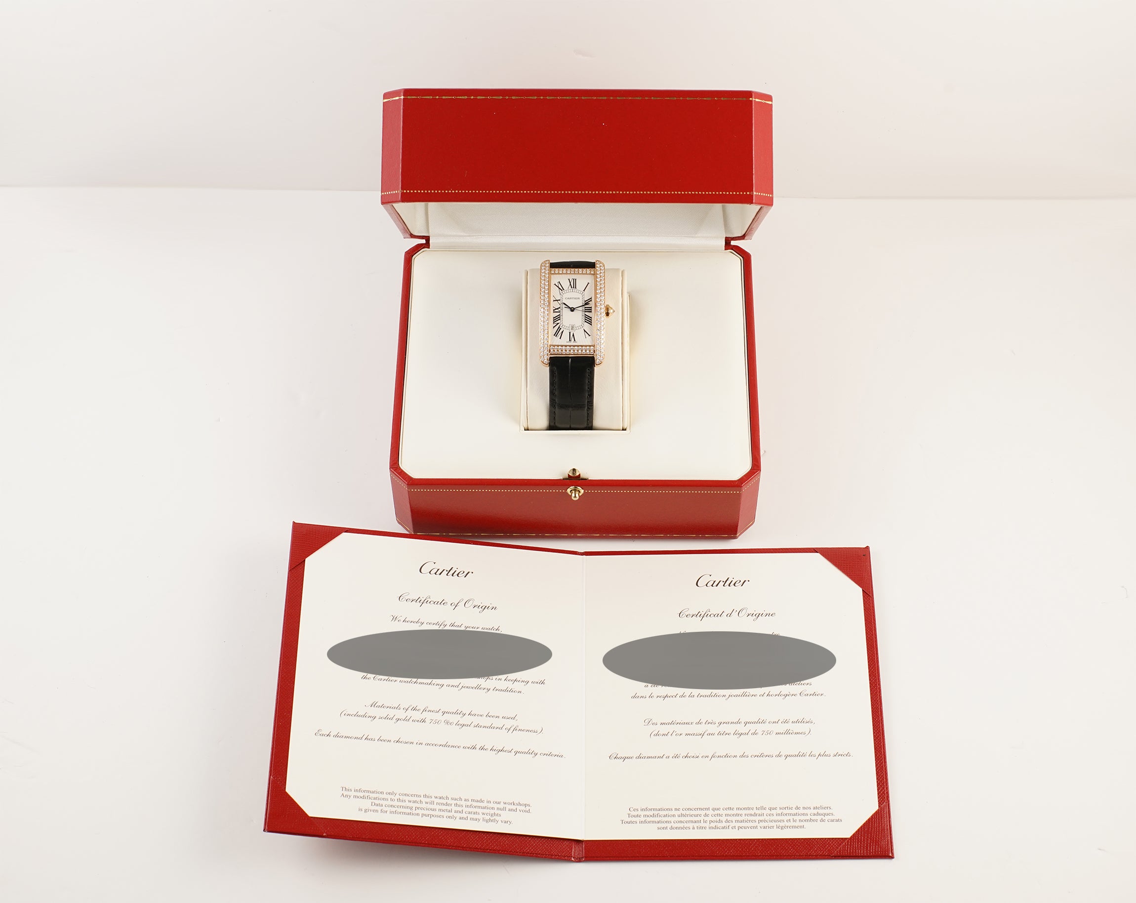 Included with the watch are original Cartier box and papers (initially dated in 2012)