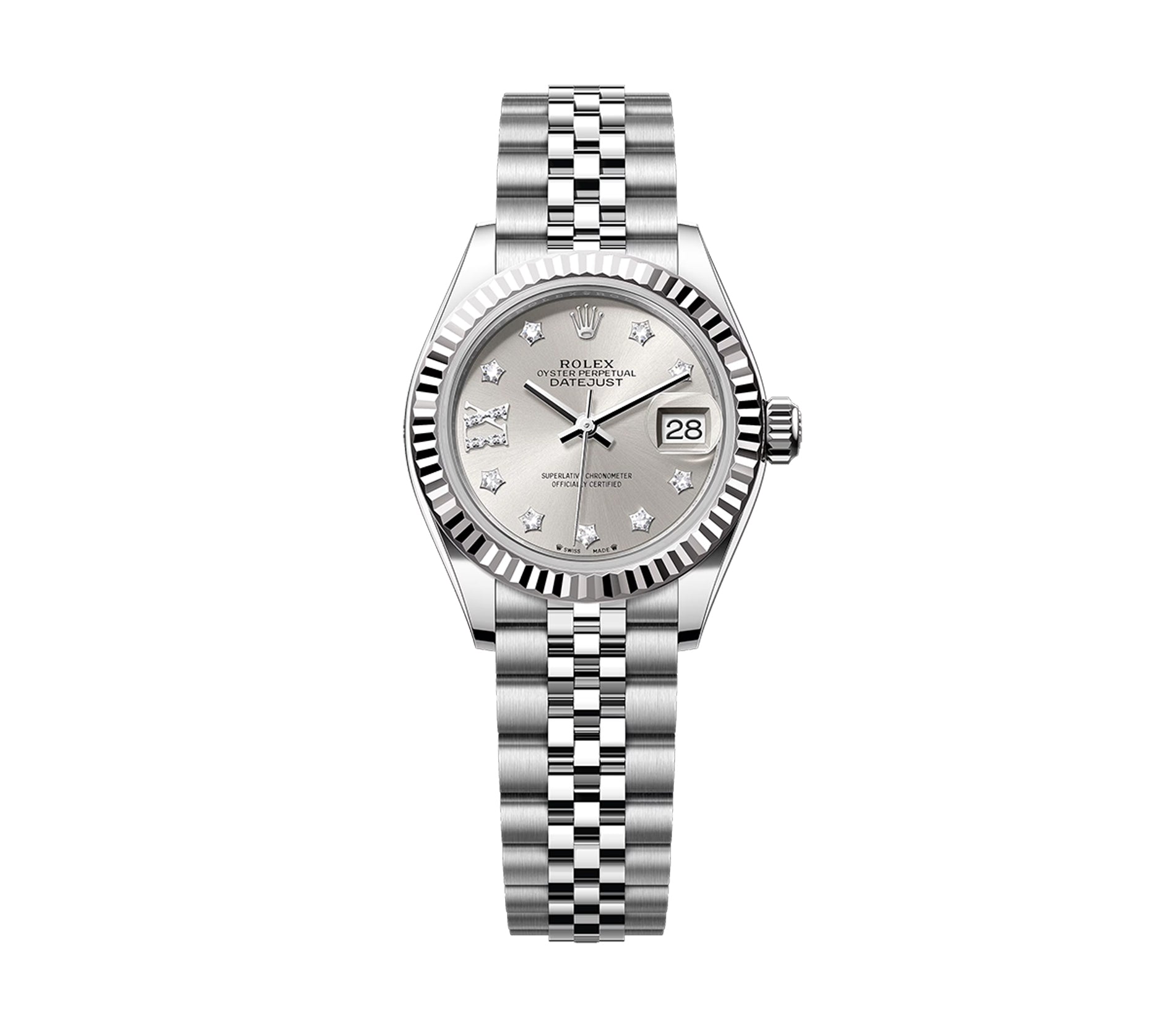 28mm Lady-Datejust Fluted Bezel and Jubilee Bracelet Silver Diamond Dial