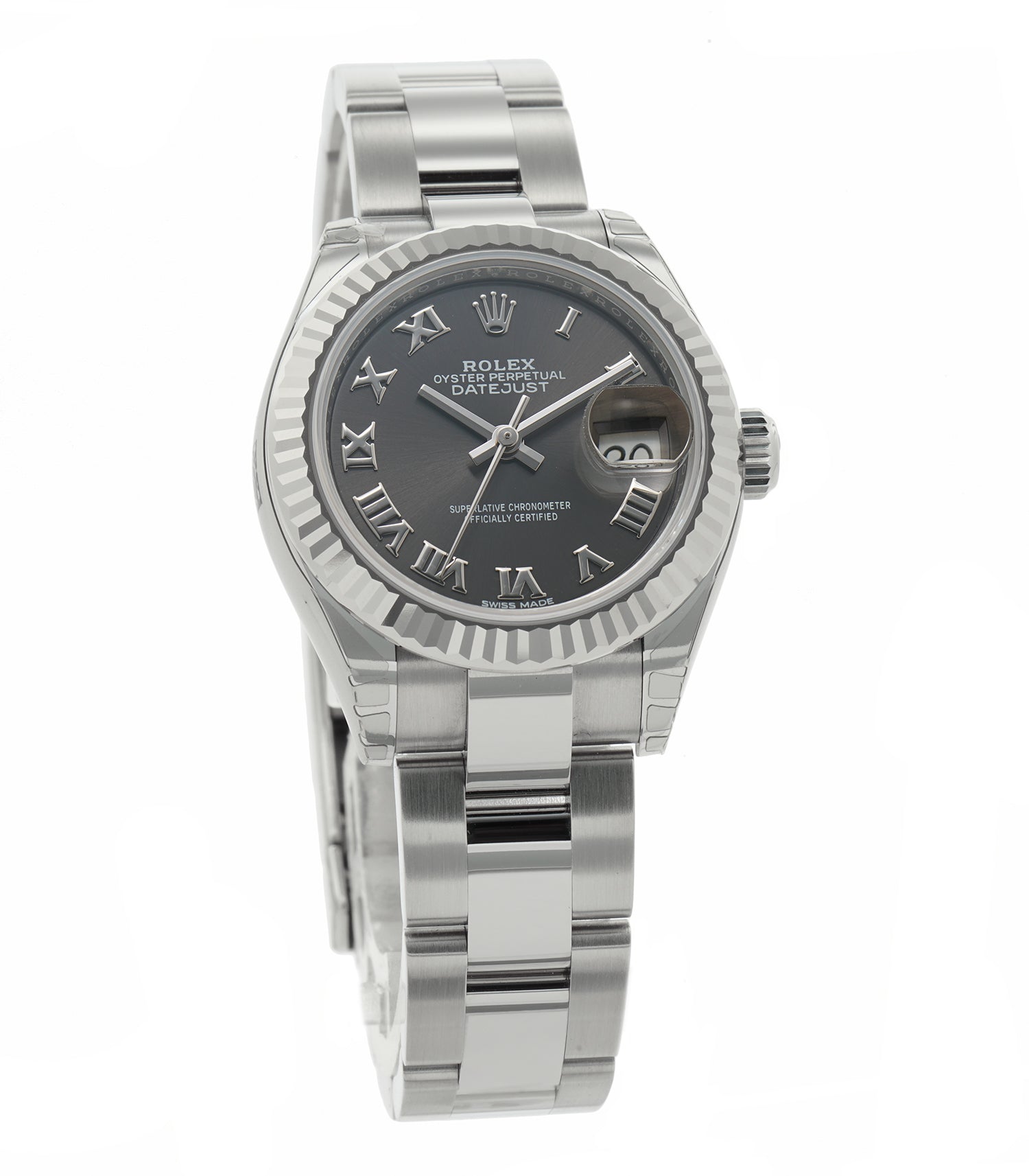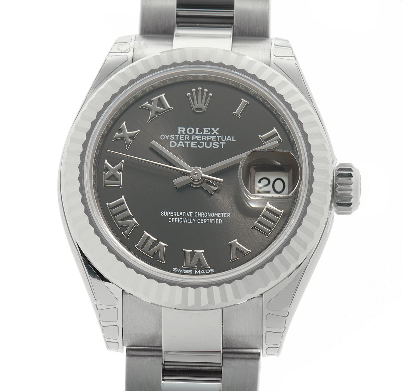 28mm Lady Datejust Fluted Bezel Dark Grey Roman Dial Oyster Bracelet