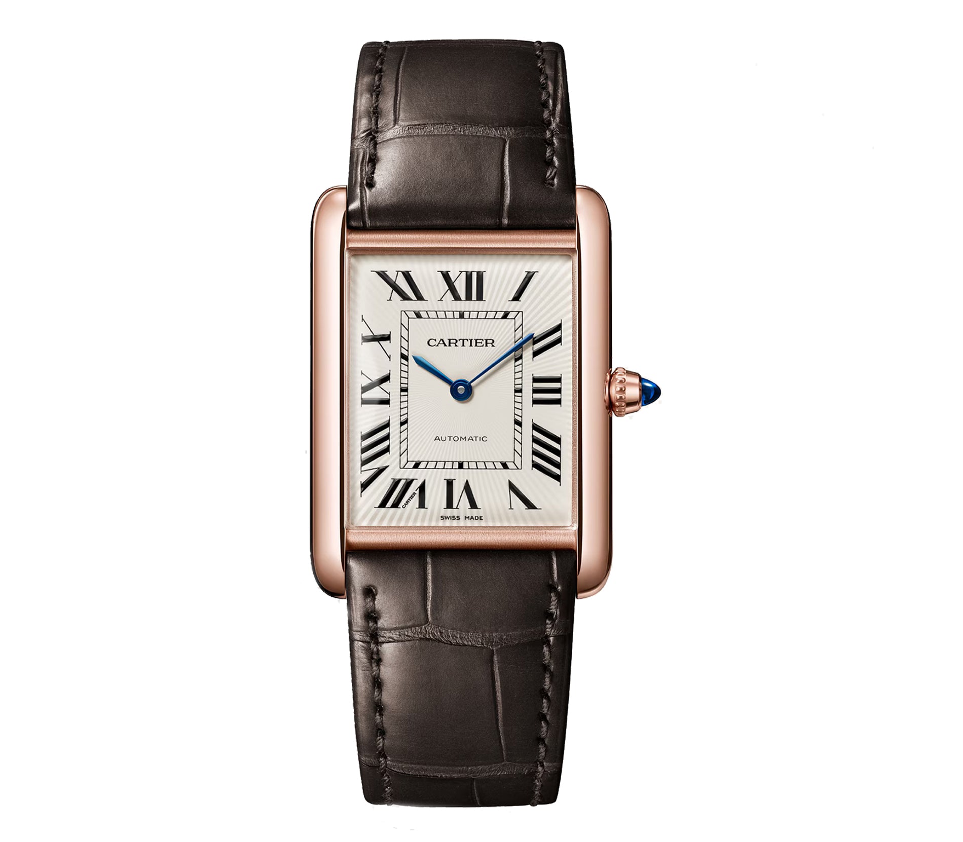 28mm Large Tank Louis Automatic Silver Dial 18k Rose Gold
