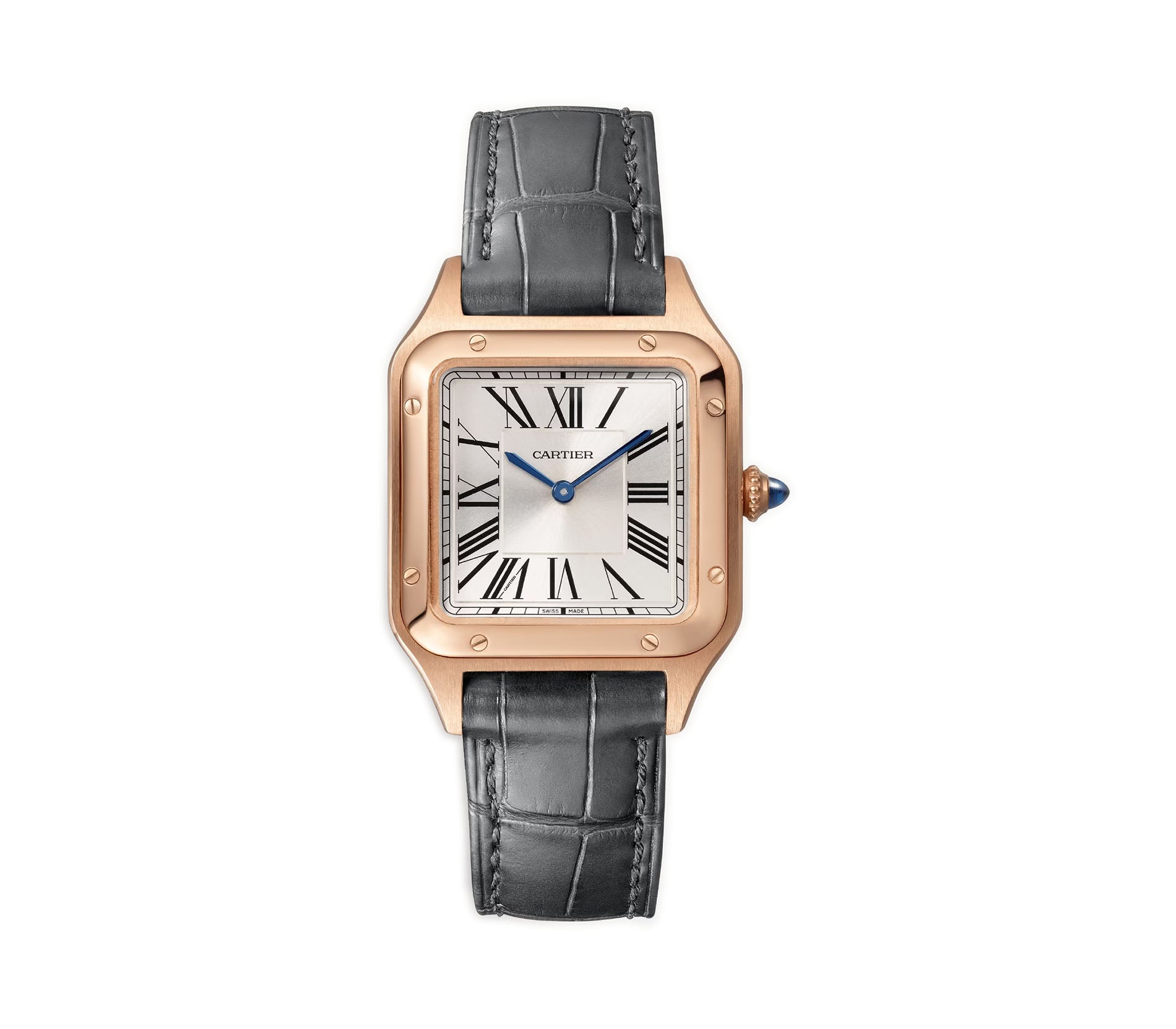 The watch case is crafted from a brush-finished 18k rose gold, accentuated by meticulously high-polish finished rose gold beveled edges. The solid 18k rose gold case back features a brushed finish as well. A fixed high-polish finished 18k rose gold bezel elegantly crowns the case.