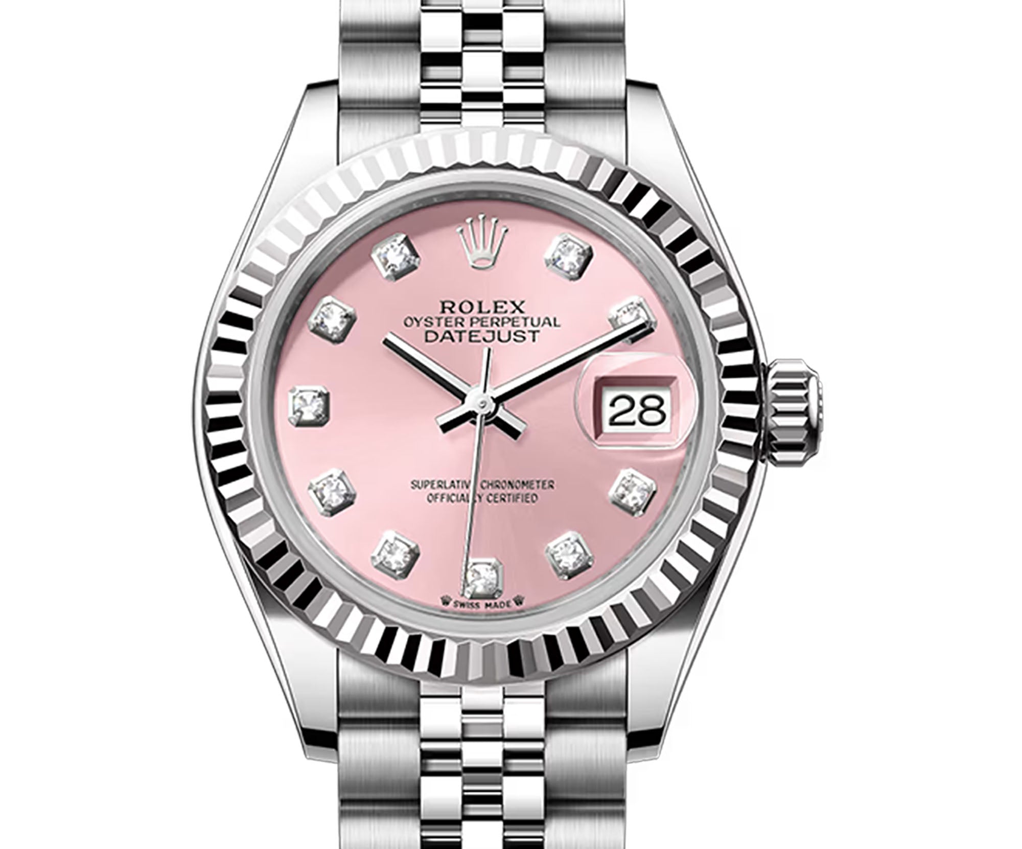 28mm Steel Pink Diamond Dial Fluted Bezel Jubilee