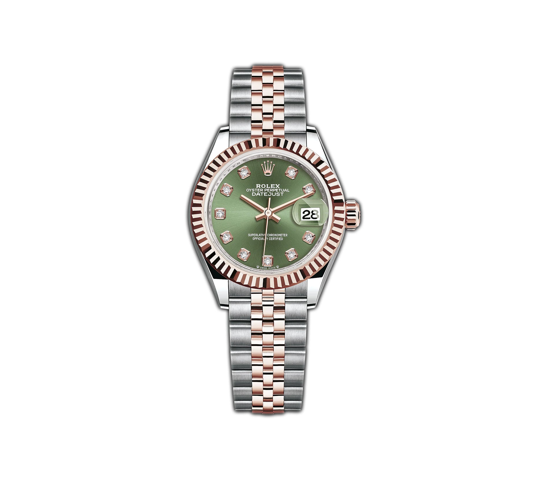 28mm Steel and 18k Everose Gold Olive Green Diamond Dial Jubilee