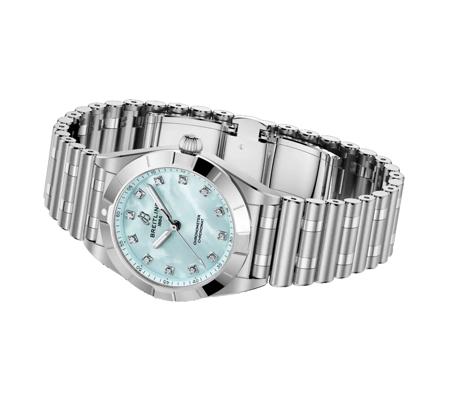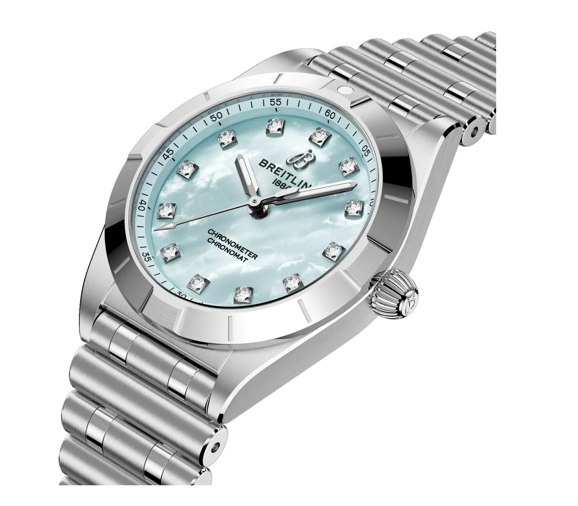 28mm Steel Diamond Blue MOP Dial Bracelet