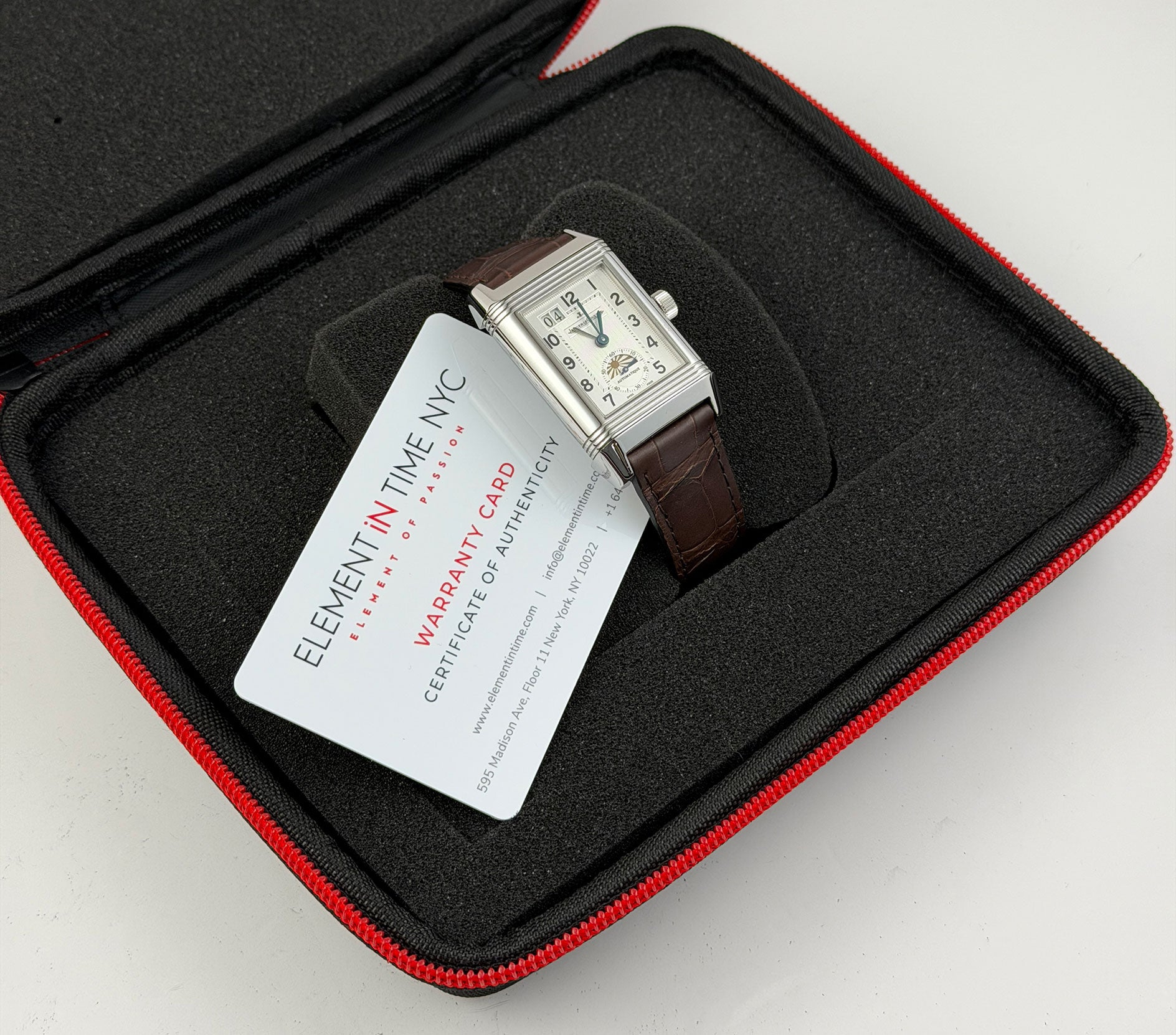This 240.8.72 Reverso Grande GMT Automatic is in impressive condition, carefully worn throughout the years. The case does have areas of mirror-like finish which are prone to hairlines (marks visible when with high resolution cameras or if angled at certain lighting). Pictures are part of the description so please refer to the pictures in determining the condition, pictures are of the exact watch being offered.
