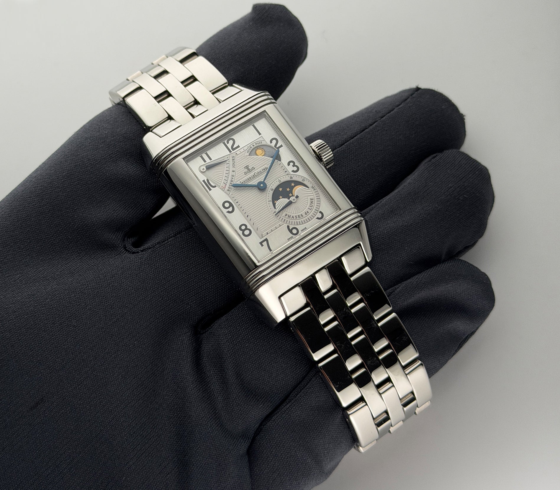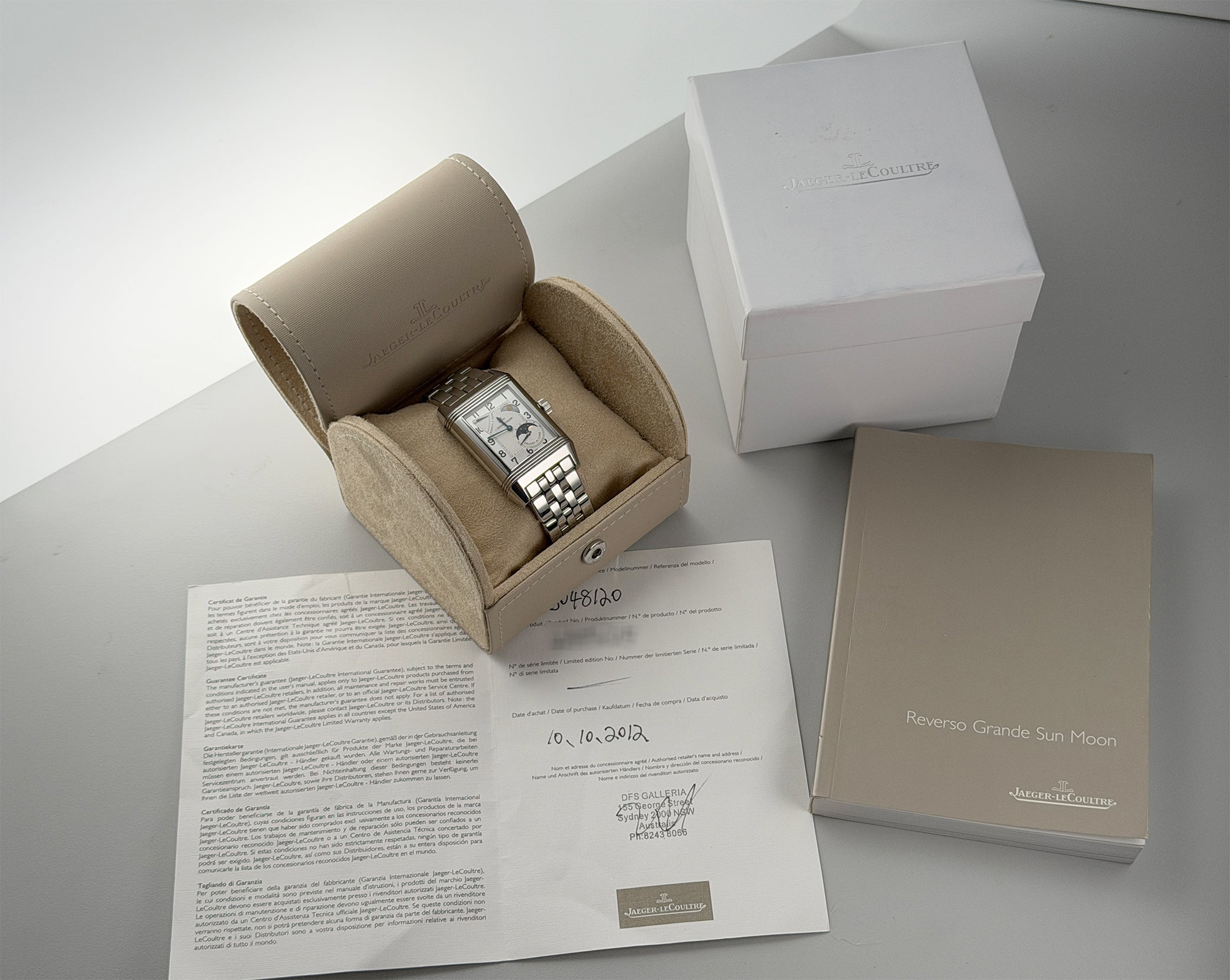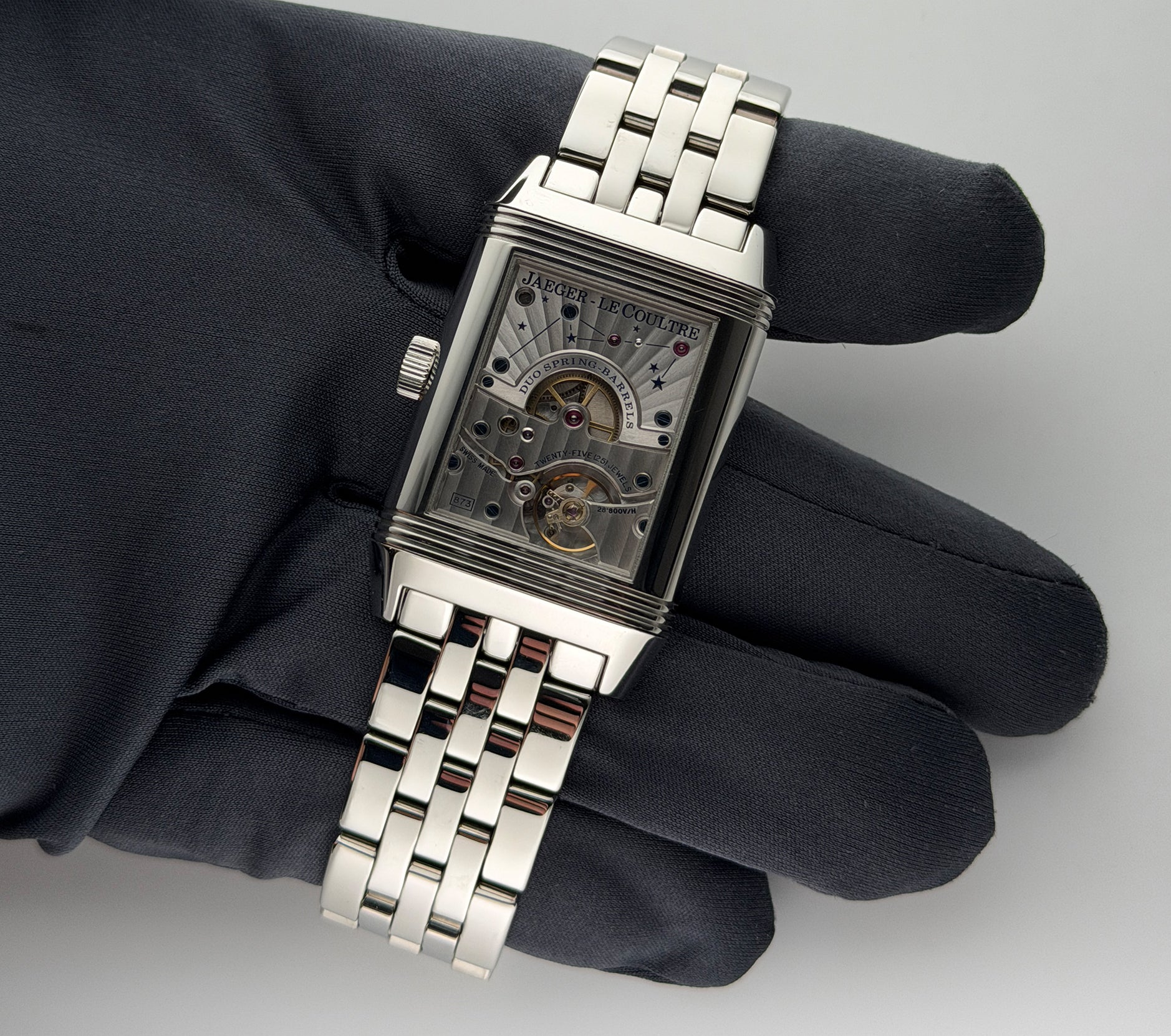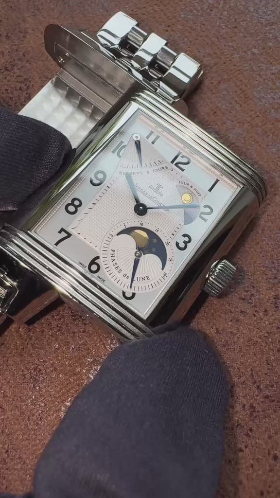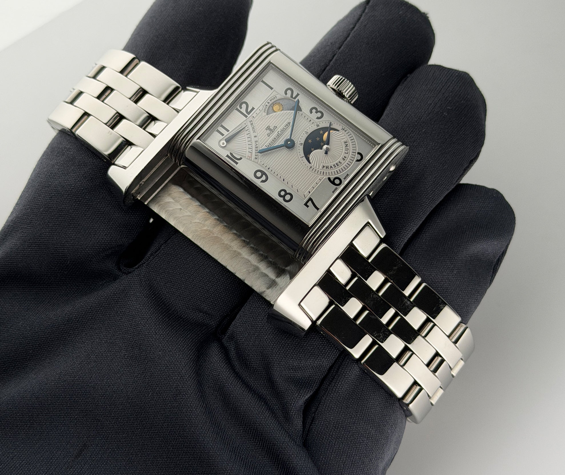 ThisĀ 304.81.20 Grande Reverso is in impressive condition for a previously enjoyed watch. The case does have areas of mirror-like finish which are prone to hairlines (marks visible when with high resolution cameras or if angled at certain lighting). Pictures are part of the description so please refer to the pictures in determining the condition, pictures are of the exact watch being offered.