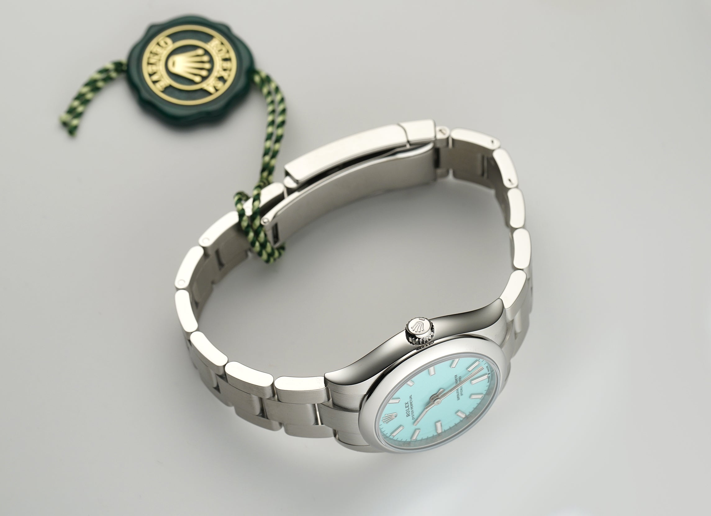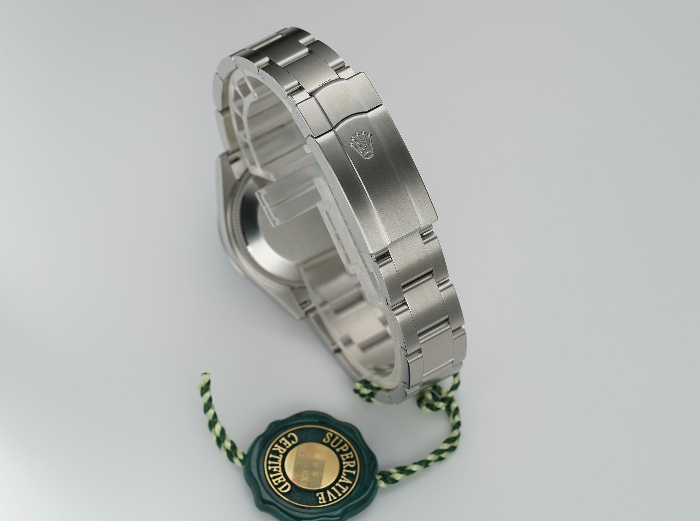 The watch is made of stainless steel, displaying a contrasting combination of both mirror and satin finishes. Mounted atop the case is a stainless steel domed bezel that is strictly mirror-finished. As for the Oyster bracelet, it is mostly of satin finish with the exception of the sides of the links which show a mirror finish to match the sides of the case.