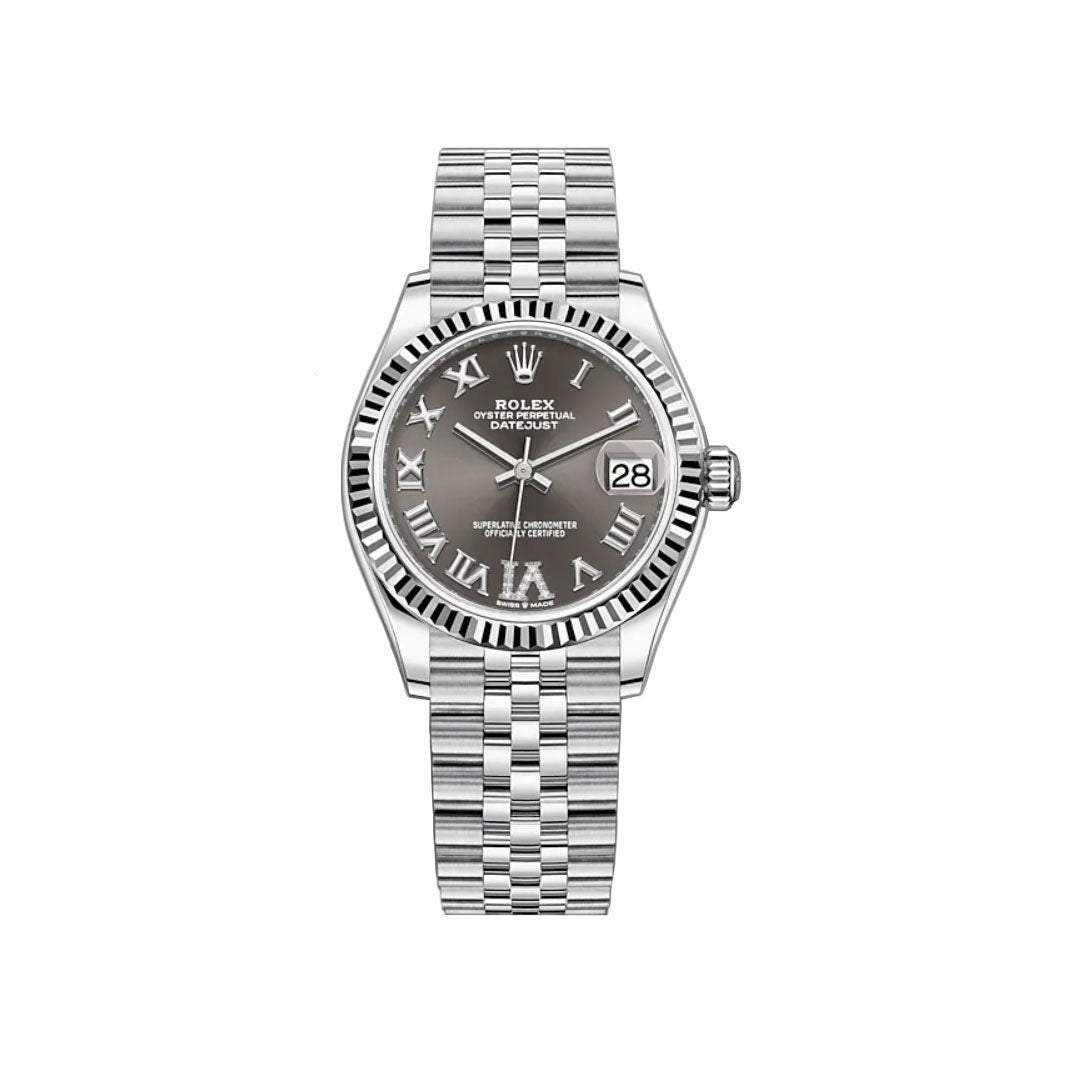 31mm Steel and 18k Fluted Bezel Dark Grey Roman Diamond Dial Jubilee Bracelet
