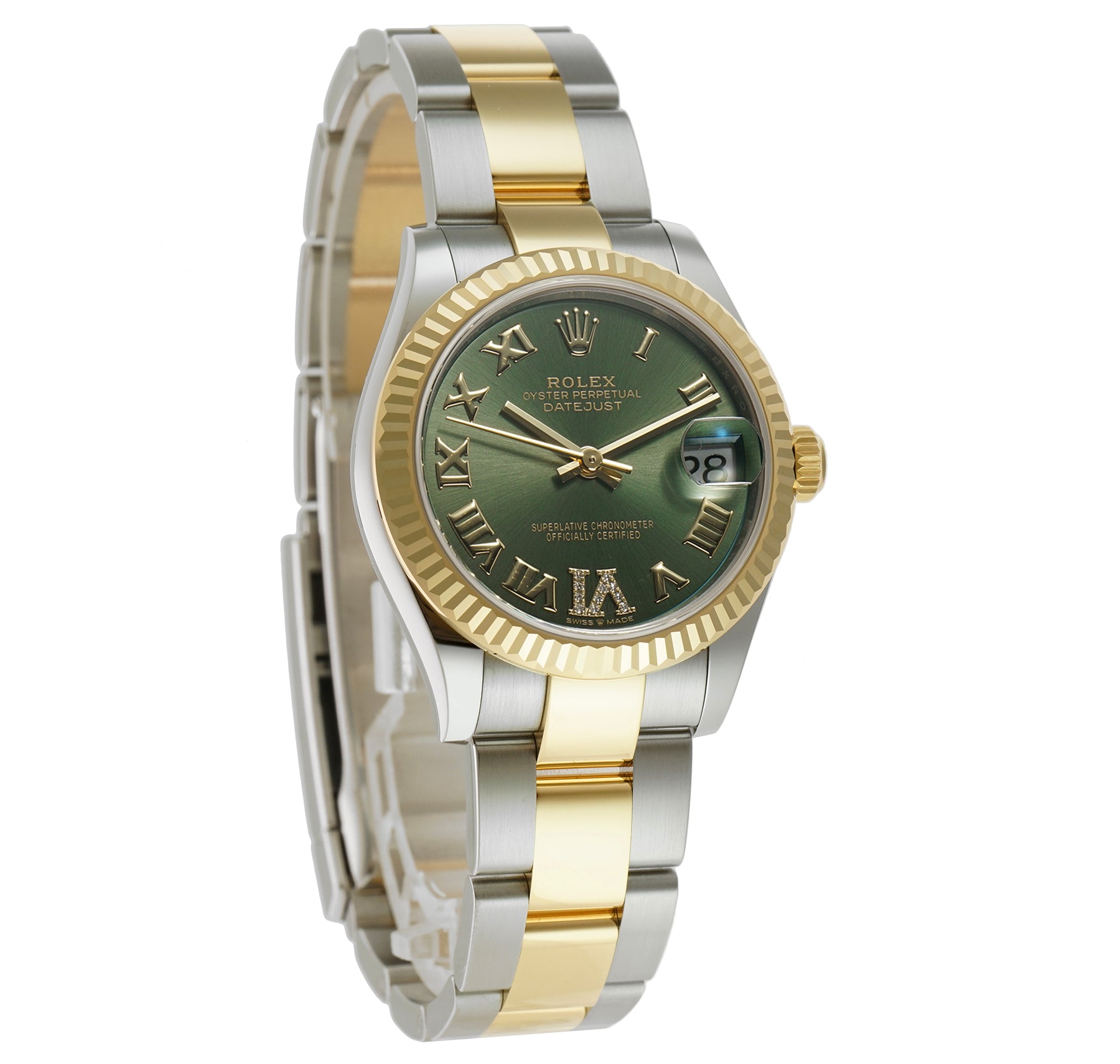 31mm Steel And 18k Yellow Gold Olive Green Roman Diamond Dial Oyster Bracelet