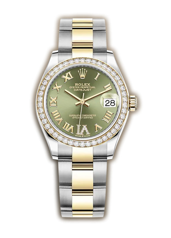 31mm Steel & Yellow Gold Diamond Bezel Olive Green Roman Diamond VI Dial Oyster Bracelet