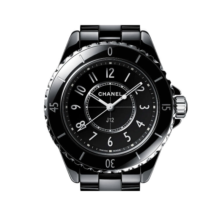 Case is made of black ceramic and equipped with an solid case back. Mounted atop the case is a unidirectional rotatable stainless steel bezel accompanied by a black ceramic bezel insert. Watch is water resistant up to 200 meters (655 feet).