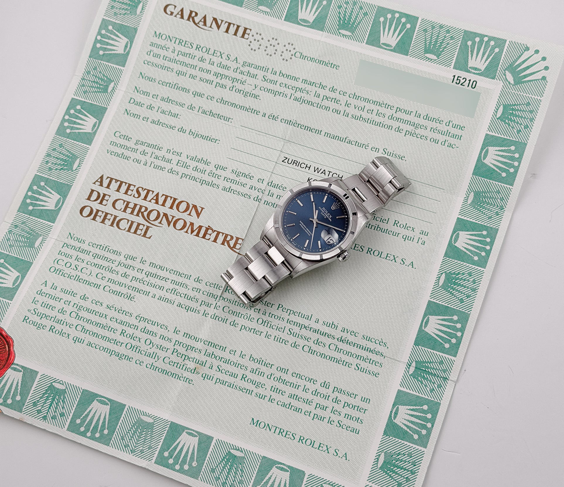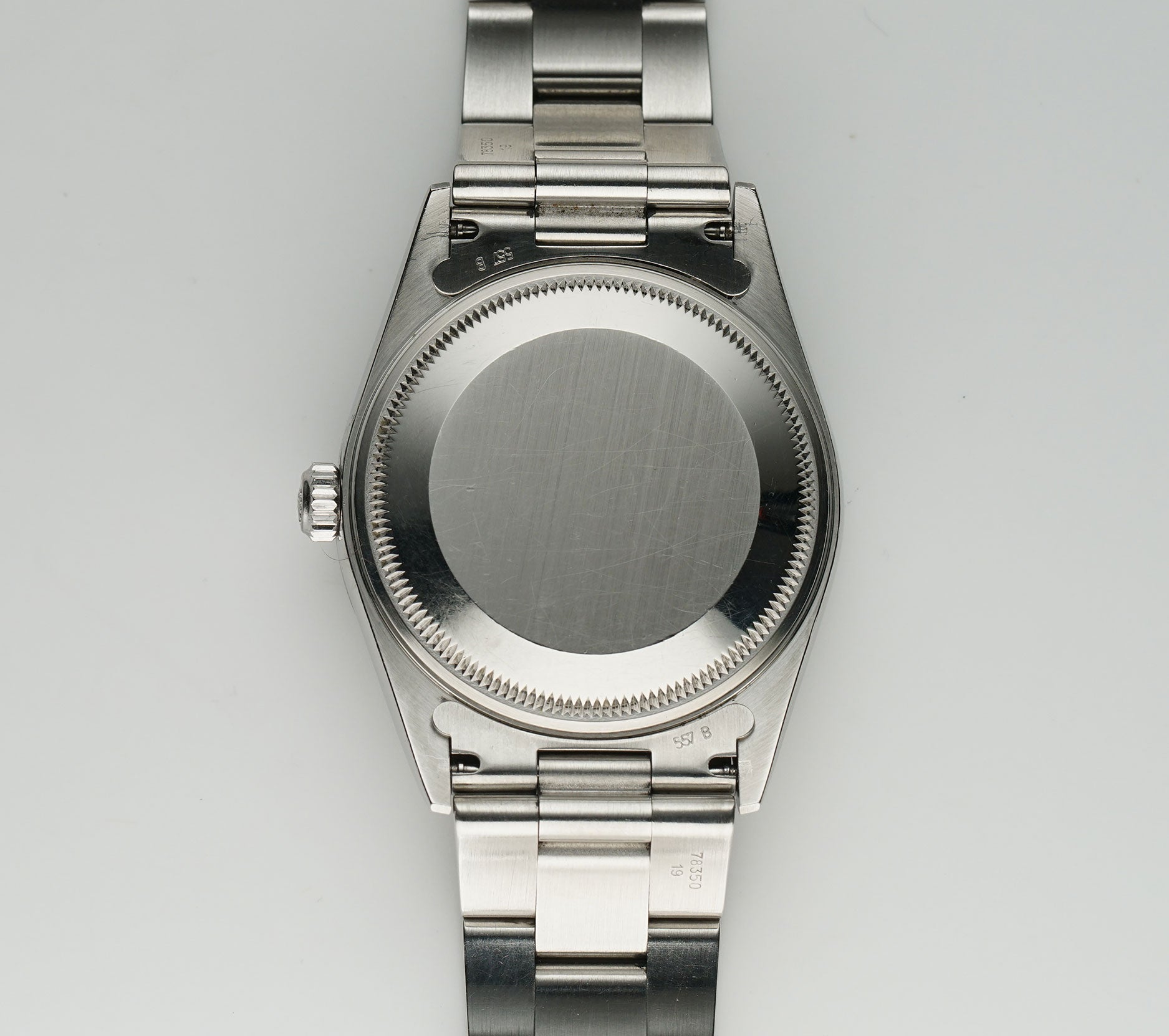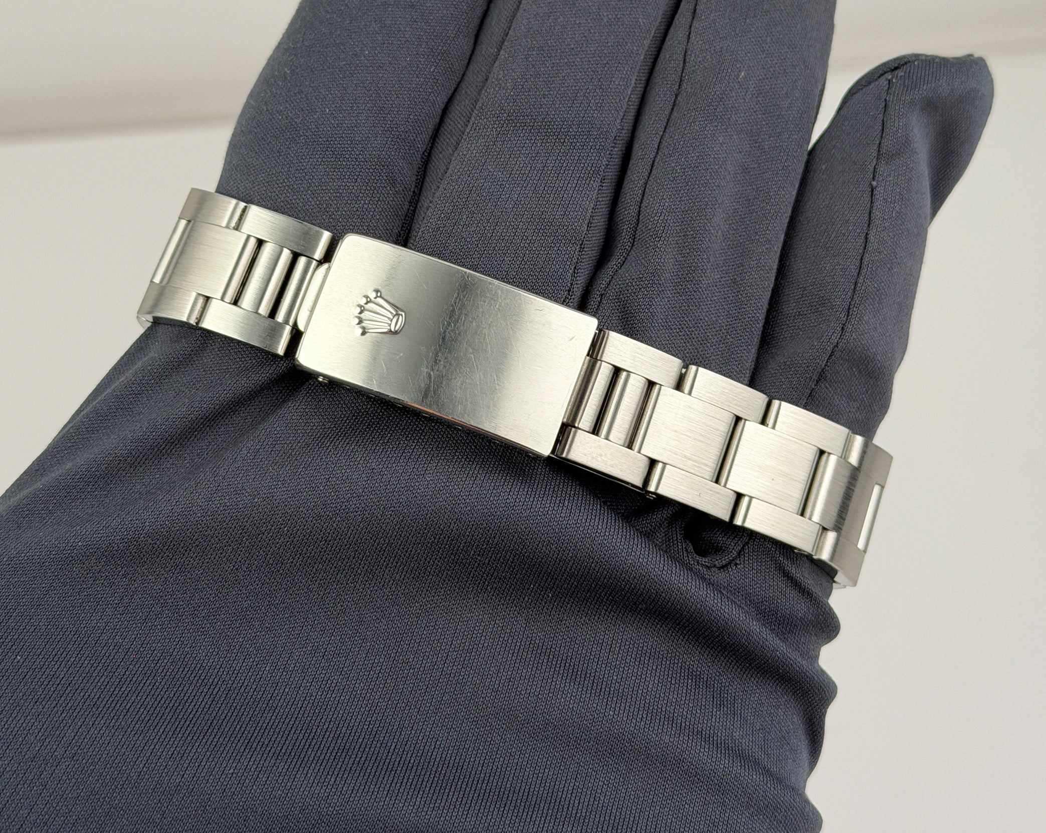 This 15210 is in great shape for a previously enjoyed watch. There are some visible blemishes on the case and lugs which is to be expected, but the case seems to be unpolished with its original finish. As for the bracelet, it has been cosmetically touched up. The case does have areas of mirror-like finish which are prone to hairlines (marks visible when with high resolution cameras or if angled at certain lighting). Pictures are part of the description so please refer to the pictures in determining the condition, pictures are of the exact watch being offered.