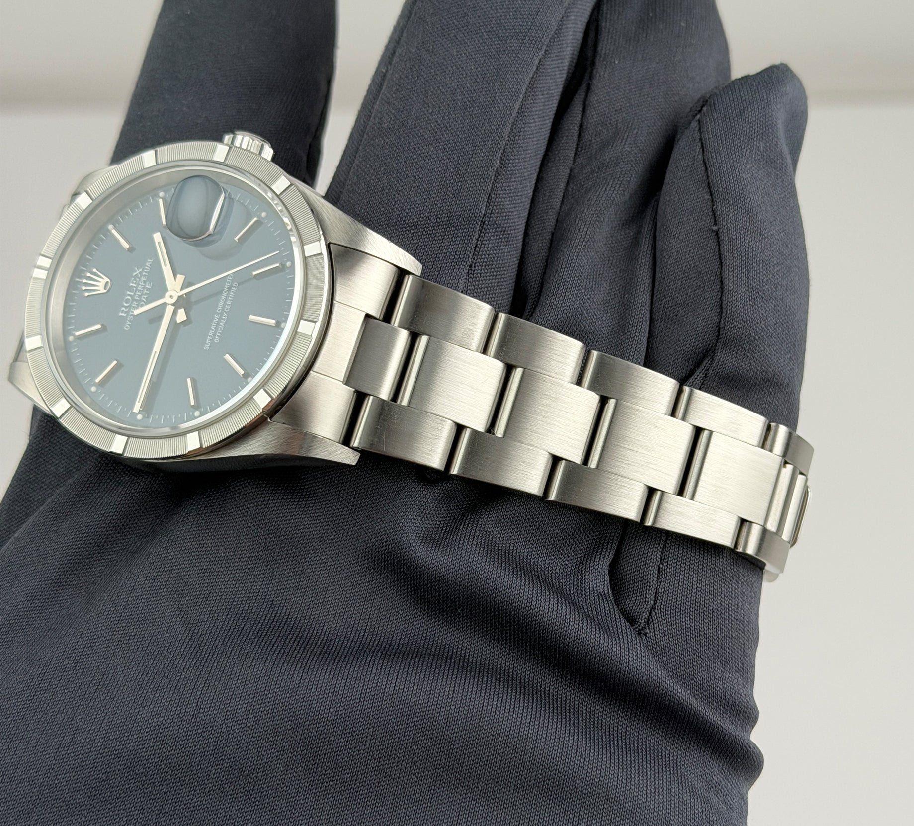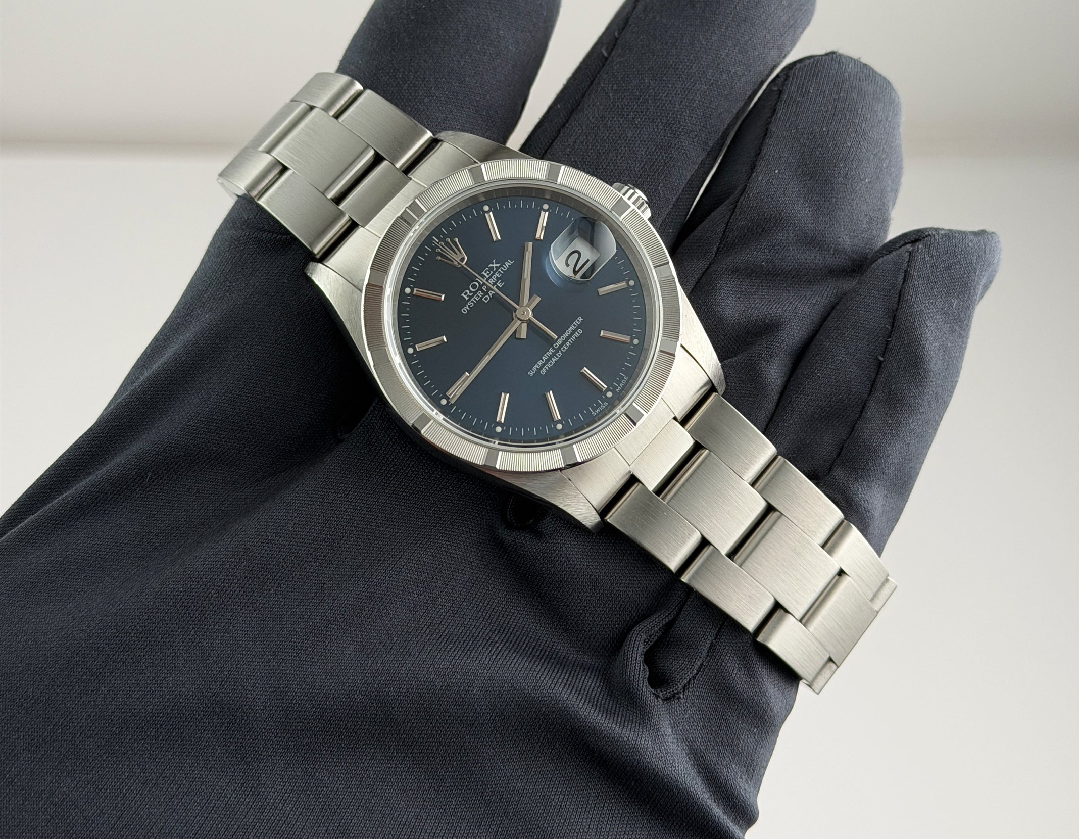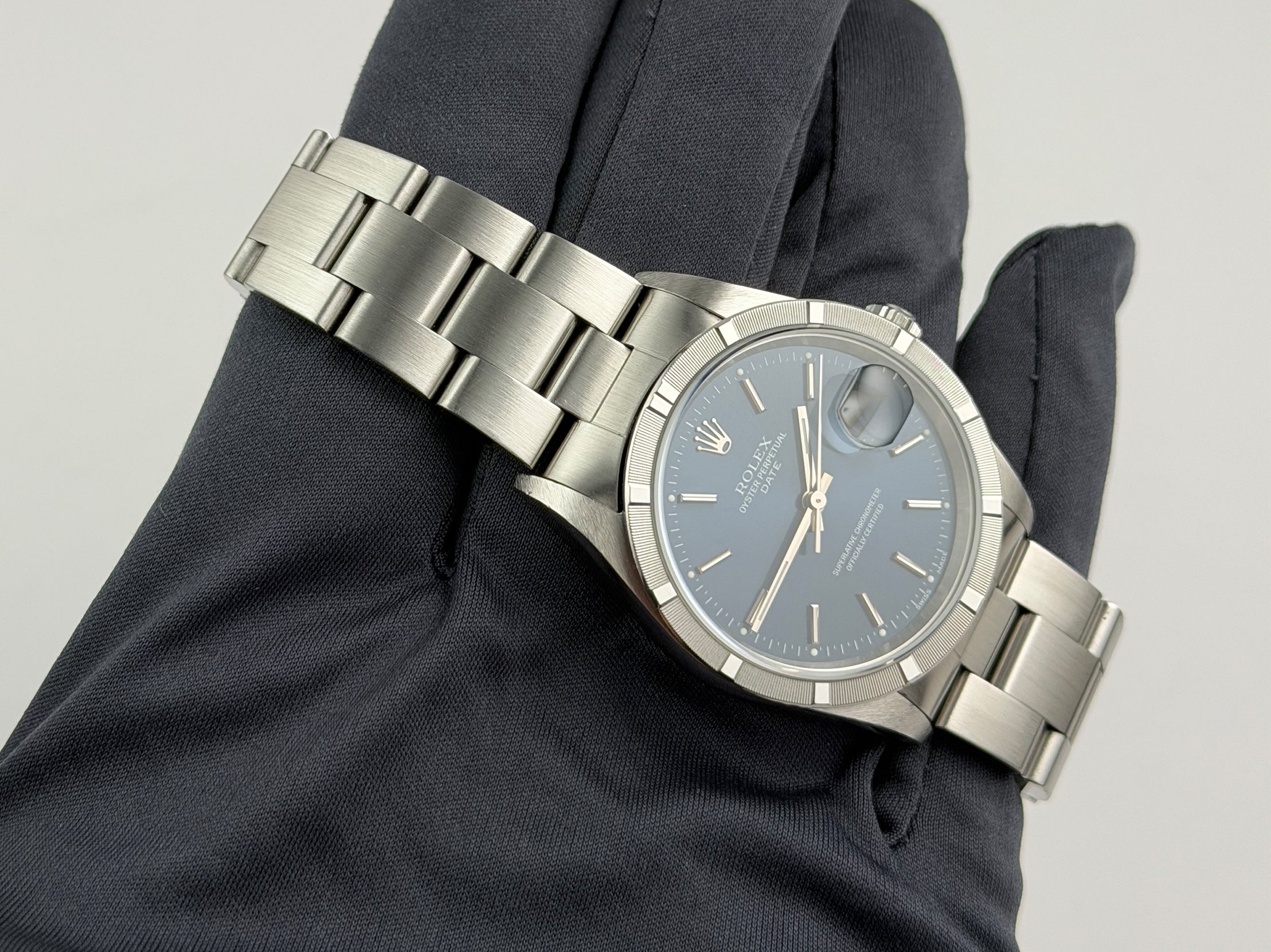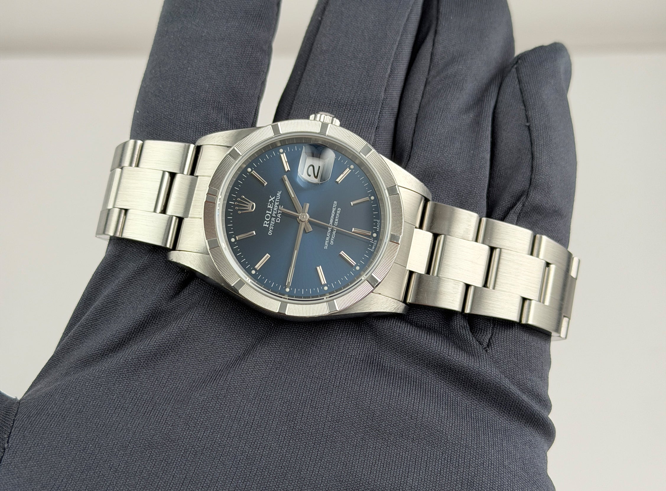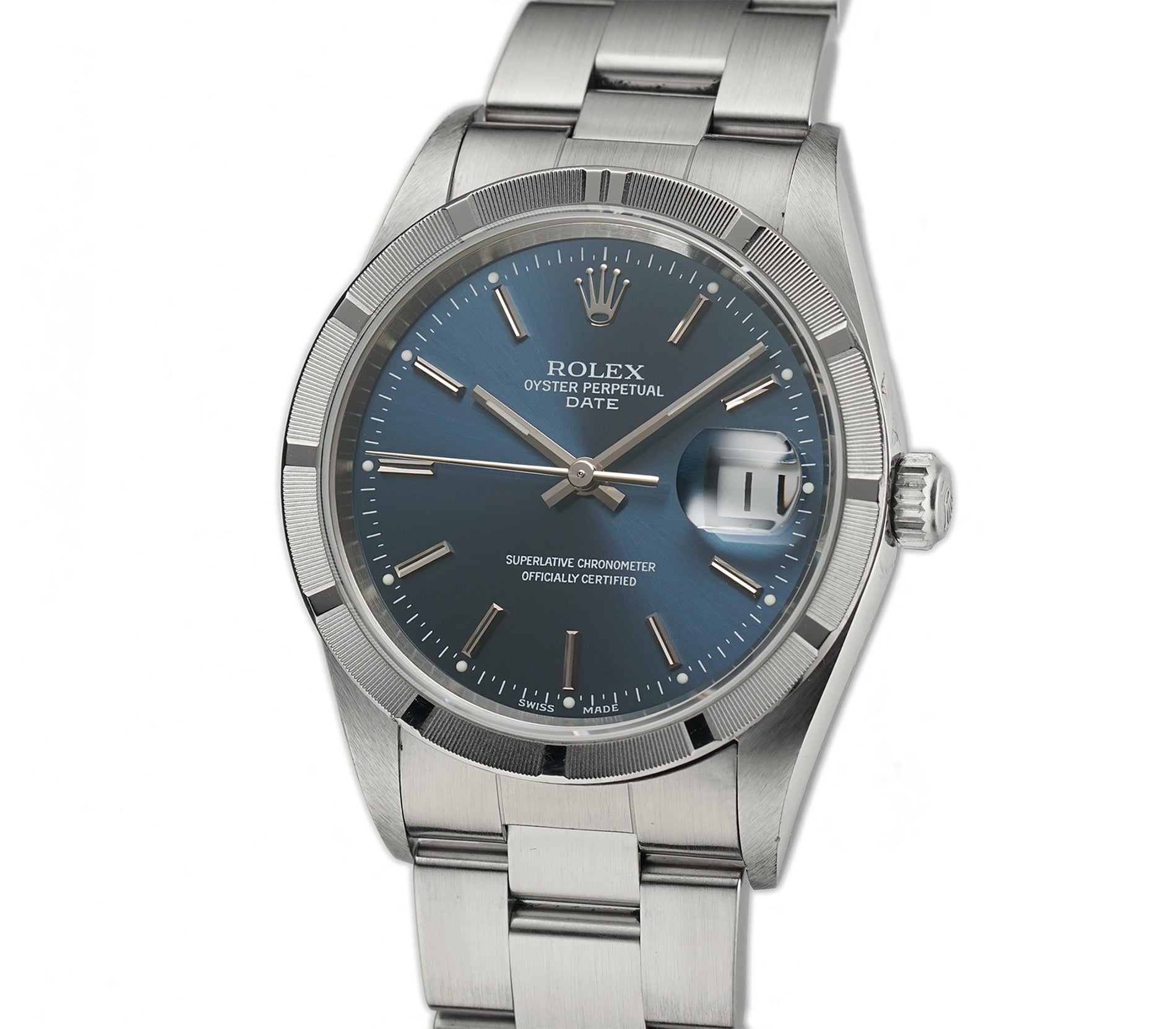 34mm Vintage Date Steel Engine Turned Bezel Blue Dial