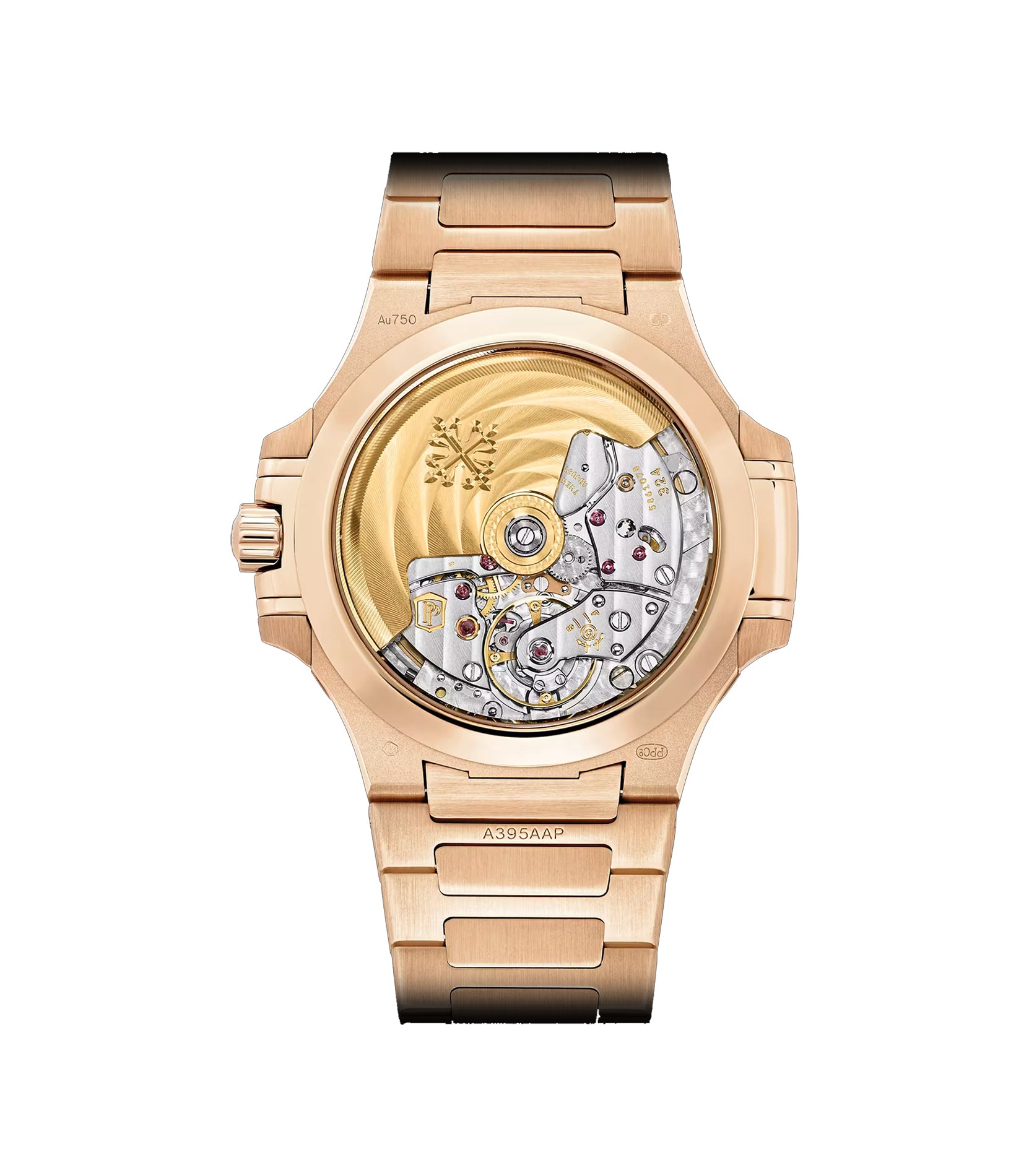Functions are displayed on a golden brown opaline wave pattern dial that is accompanied by luminescent filled hands as well as luminescent filled markers. The dial also features a date aperture at 6'o clock.