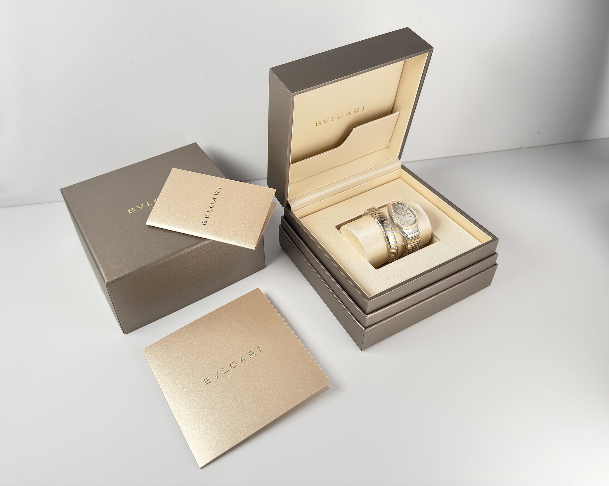 This BVLGARI Serpenti Tubogas 103648 is new and unworn with original box and papers.