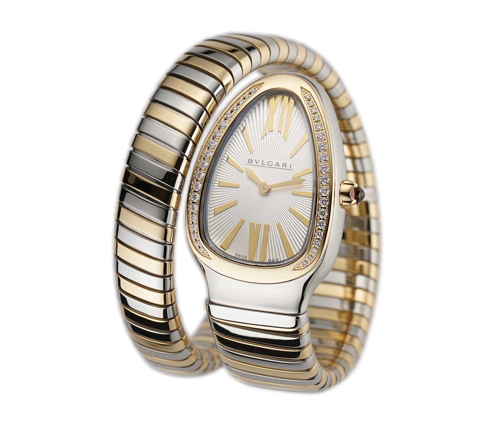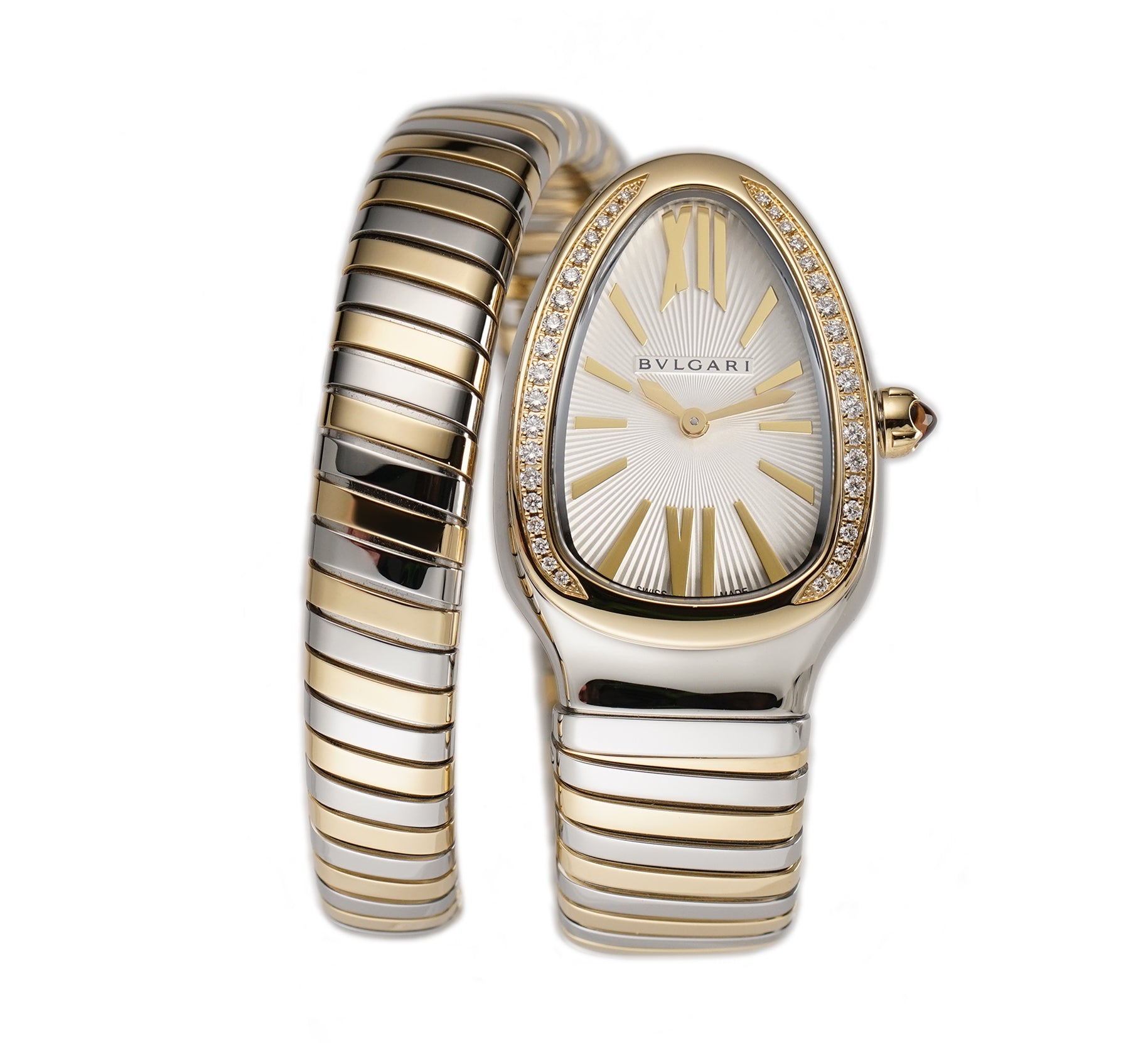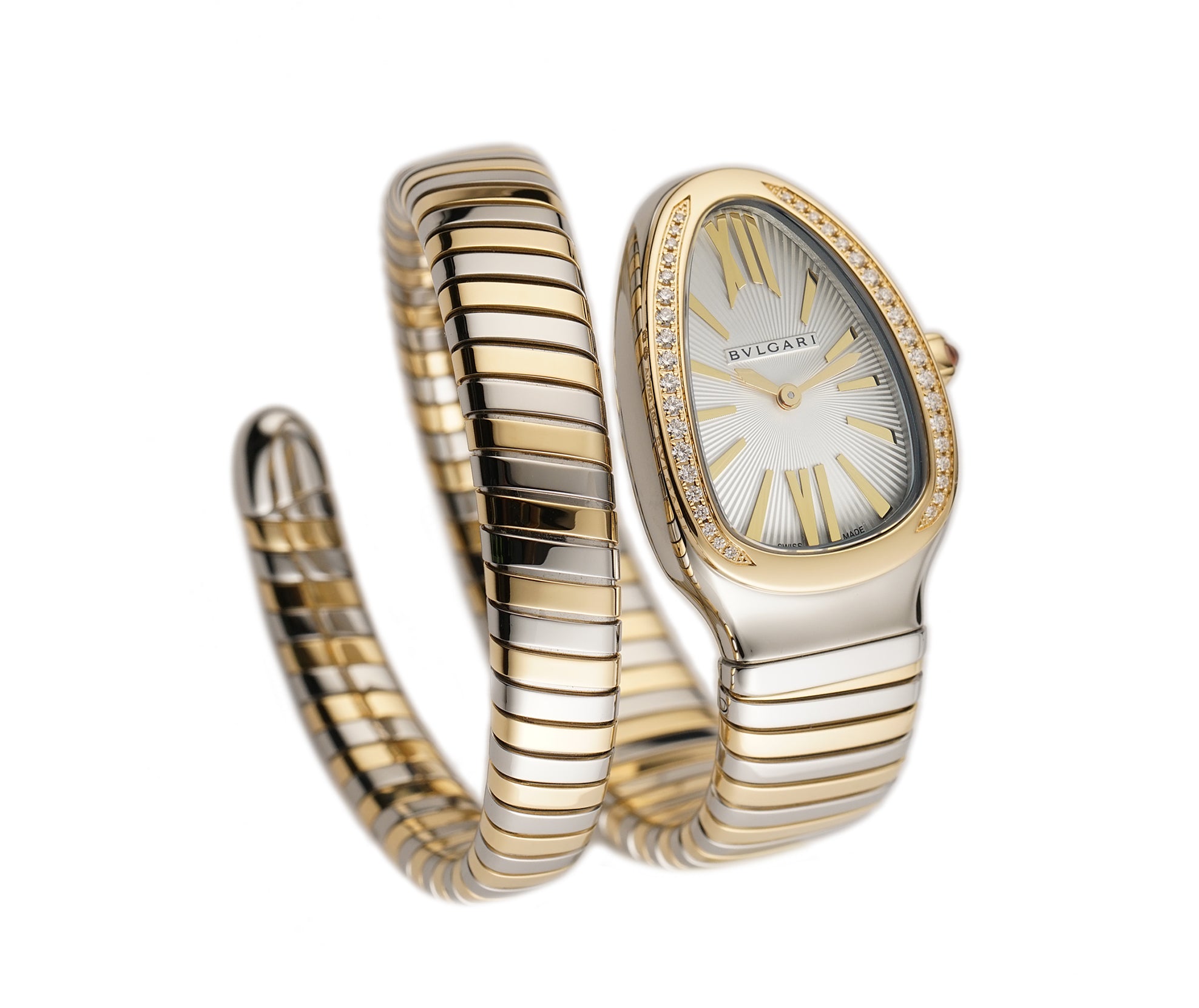 35mm Tubogas Single Spiral Steel and 18k YG Diamond Bezel Silver Dial