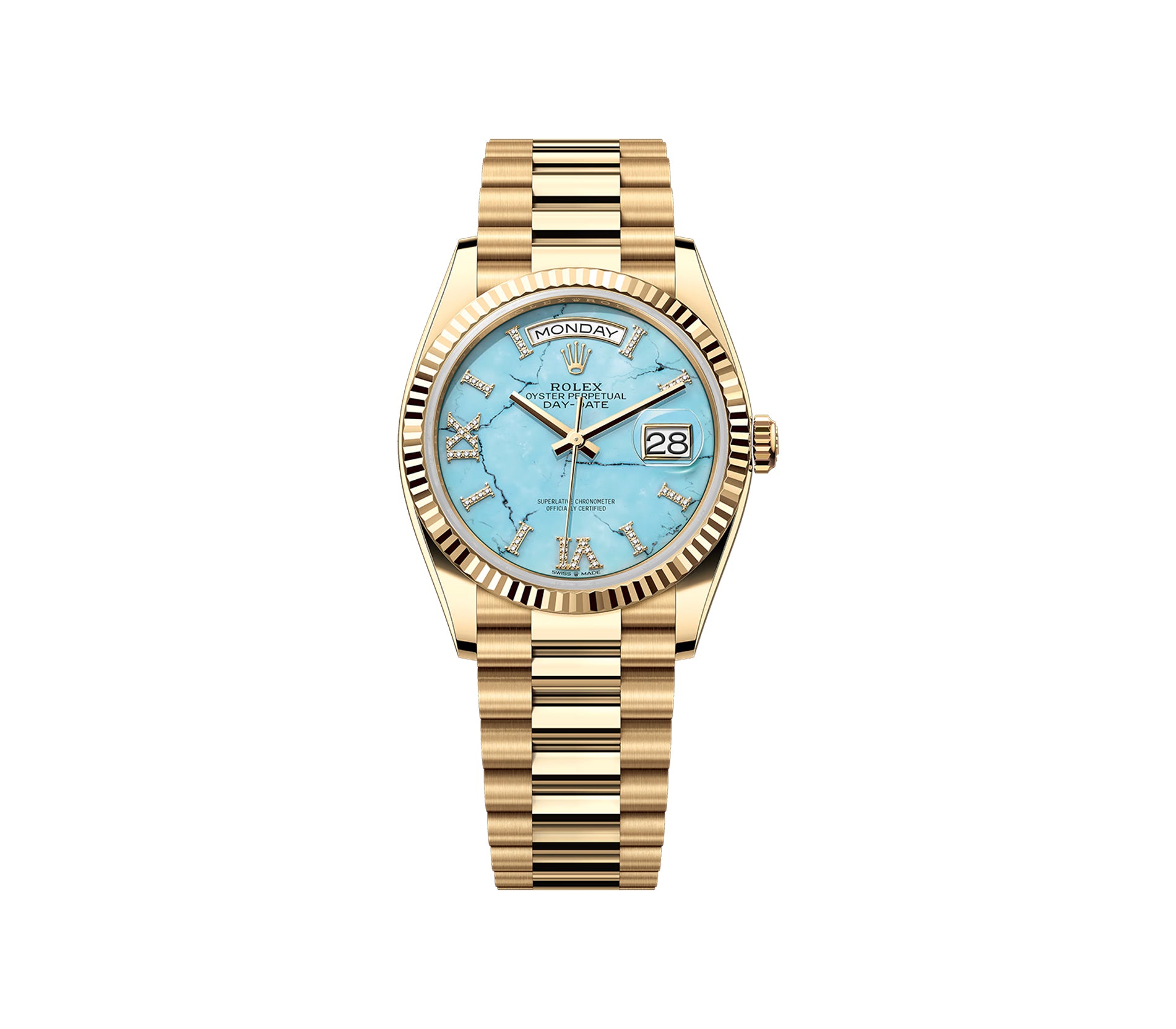 36mm 18k Yellow Gold President Turquoise Diamond Dial