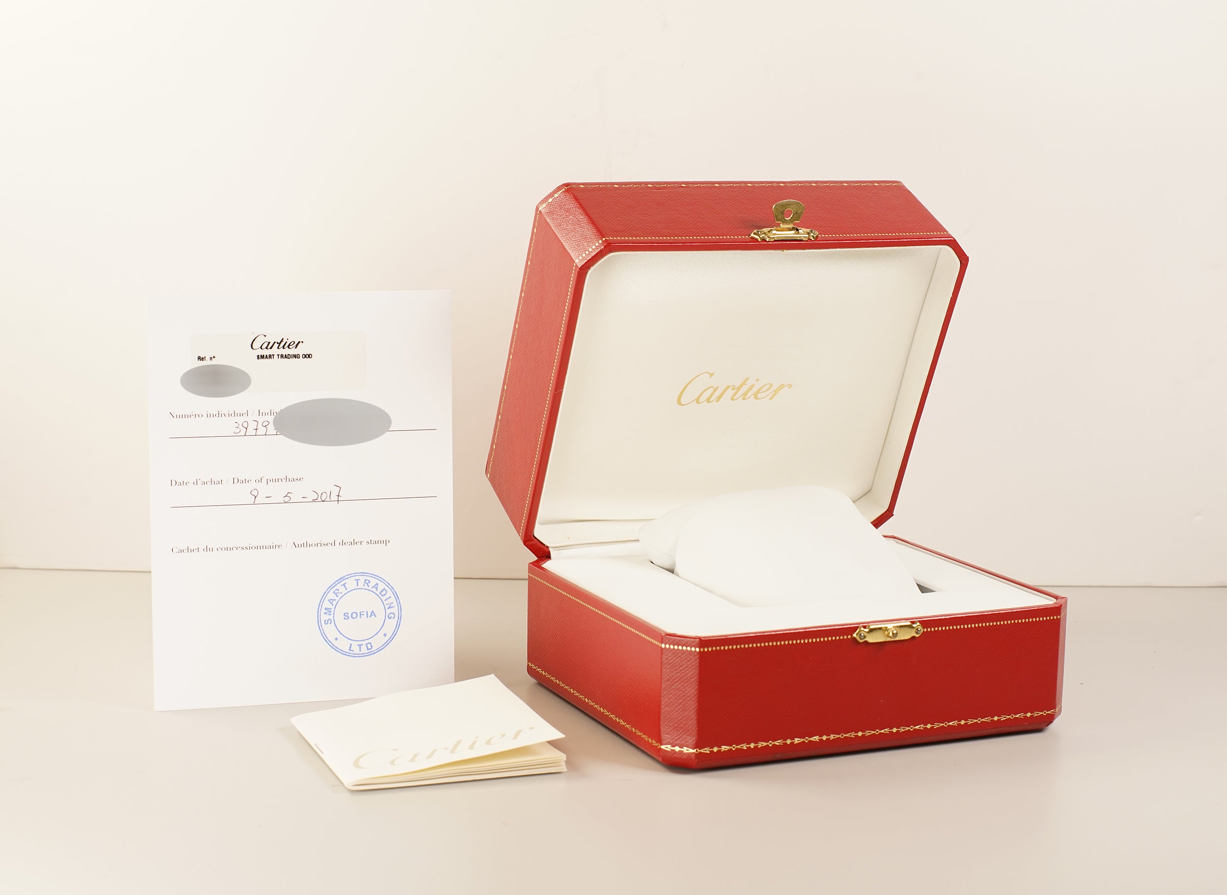 Included with the watch is an original red Cartier box as well as the original papers which were initially dated in 2017.