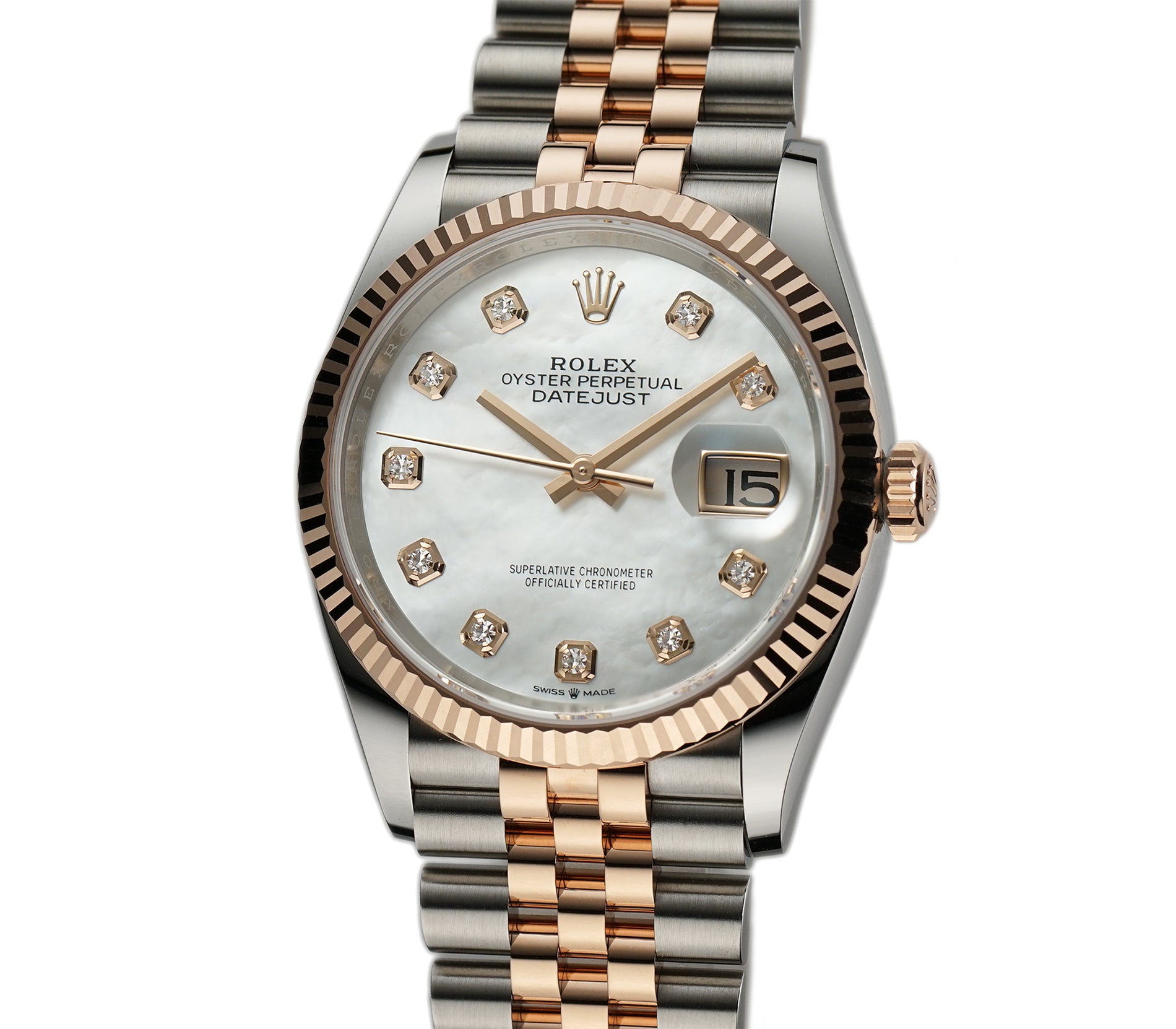 36mm Steel & 18k RG MOP Mother of Pearl Diamond Dial Jubilee