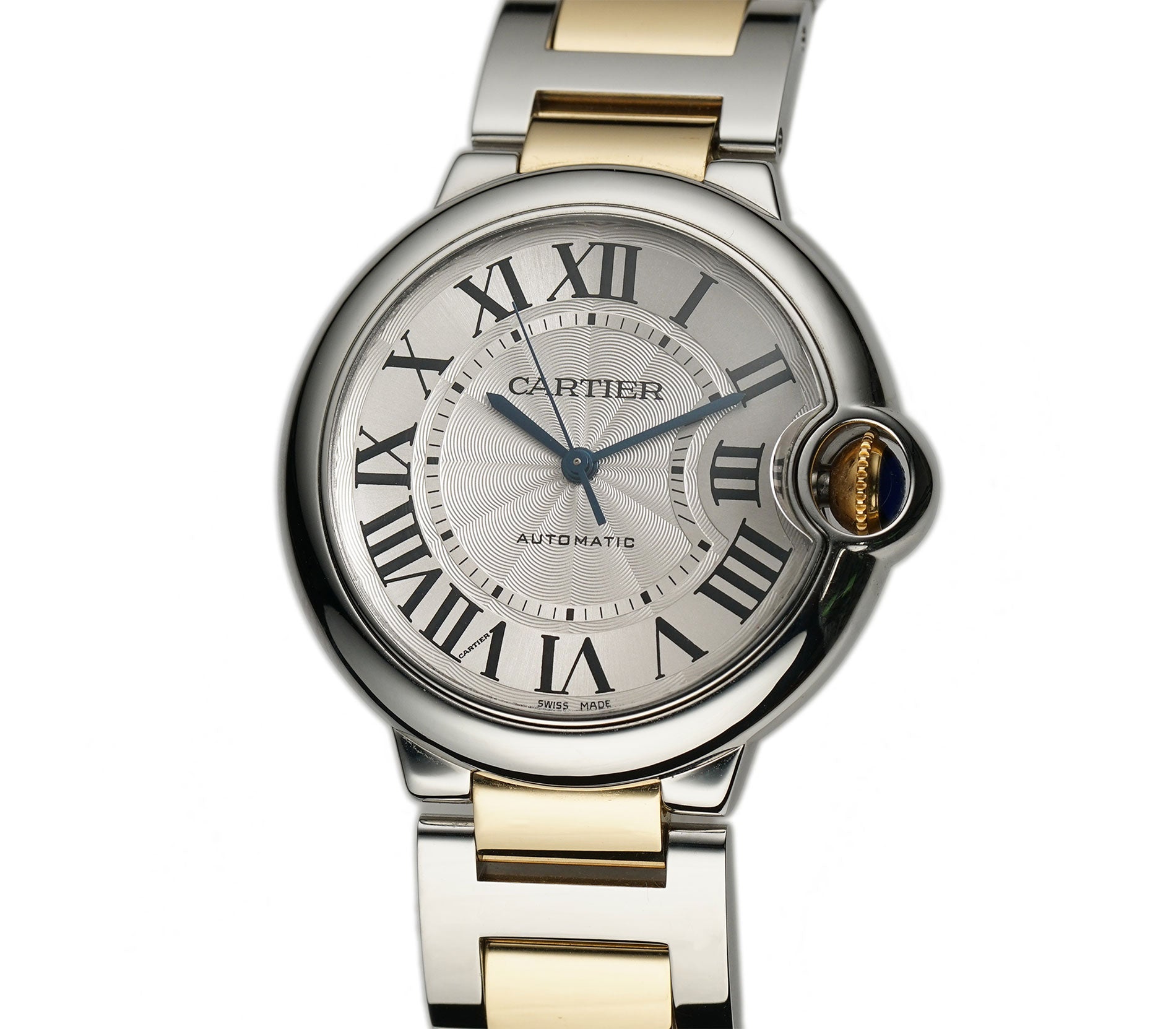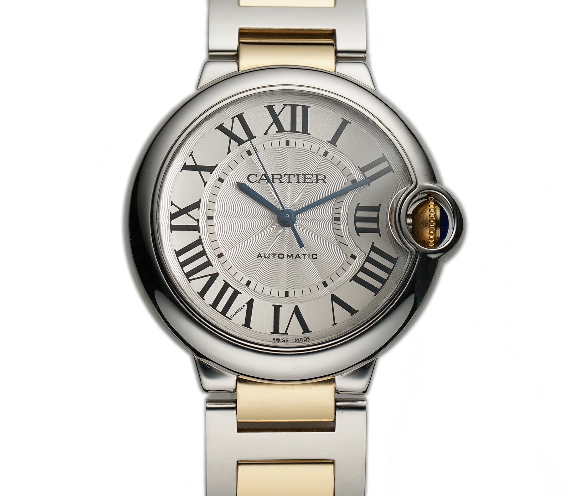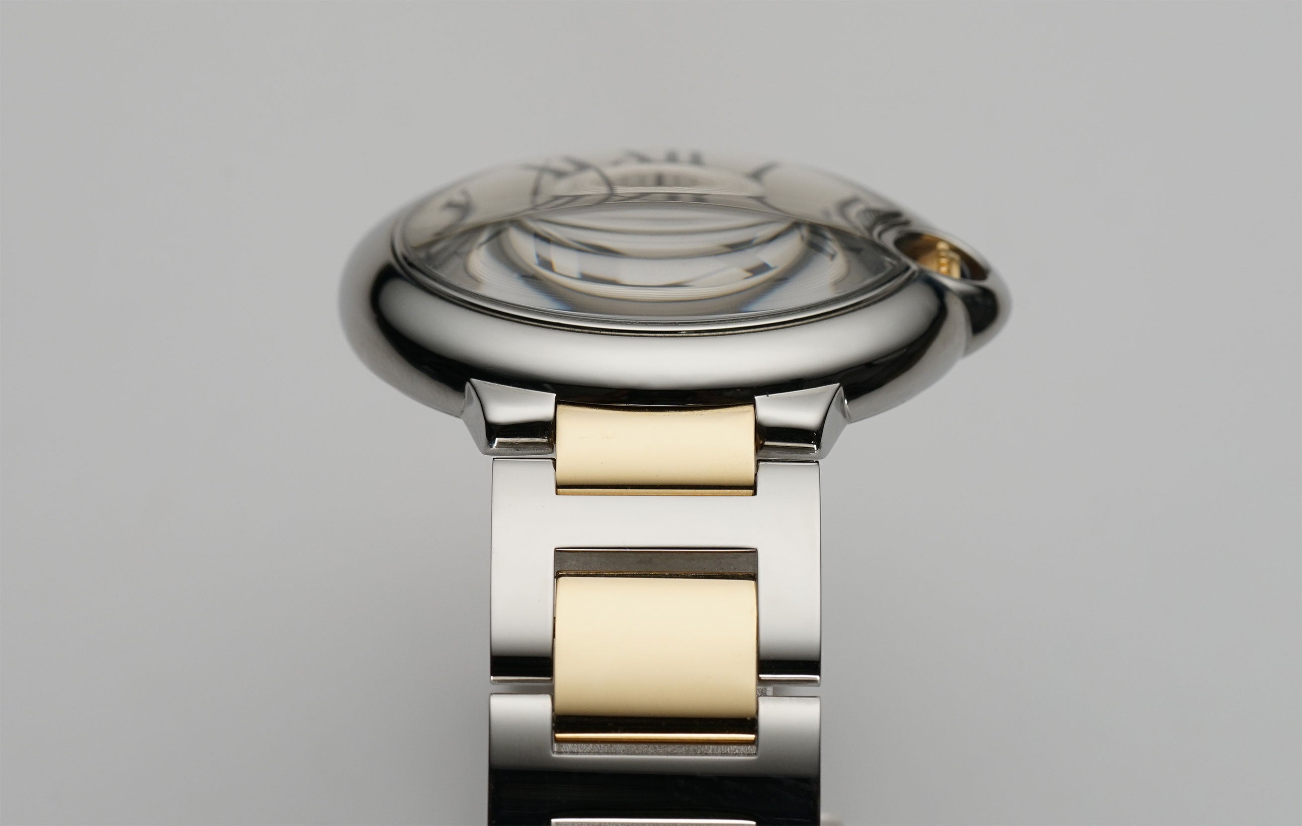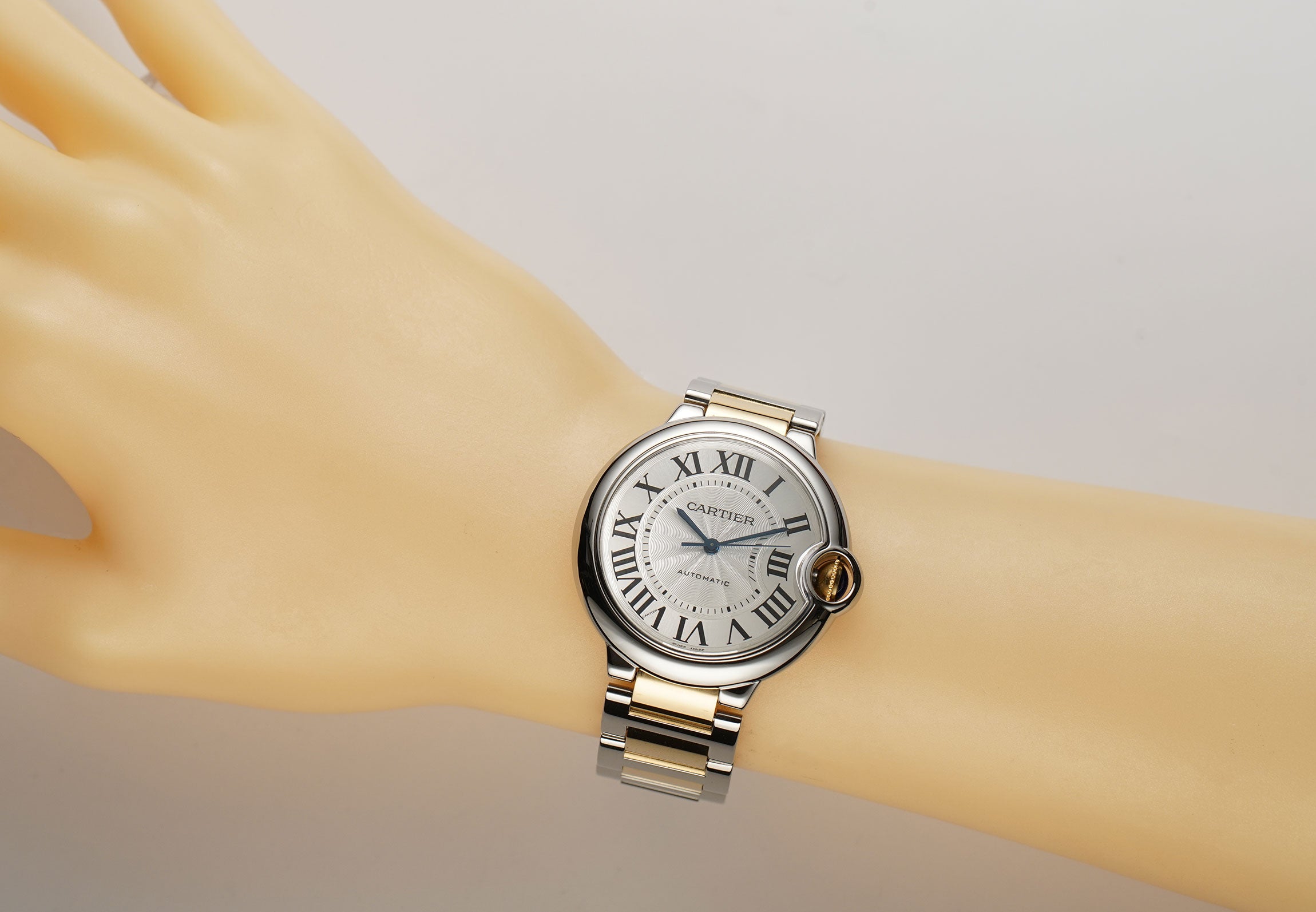 This Cartier Ballon Bleu two-tone 3284 is in excellent condition for a previously worn watch. The case does have areas of mirror-like finish which are prone to hairlines (marks visible when with high resolution cameras or if angled at certain lighting). Pictures are part of the description so please refer to the pictures in determining the condition, pictures are of the exact watch being offered.