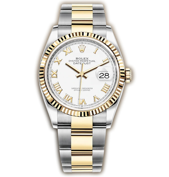 36mm Steel & Yellow Gold Fluted Bezel White Roman Dial Oyster Bracelet