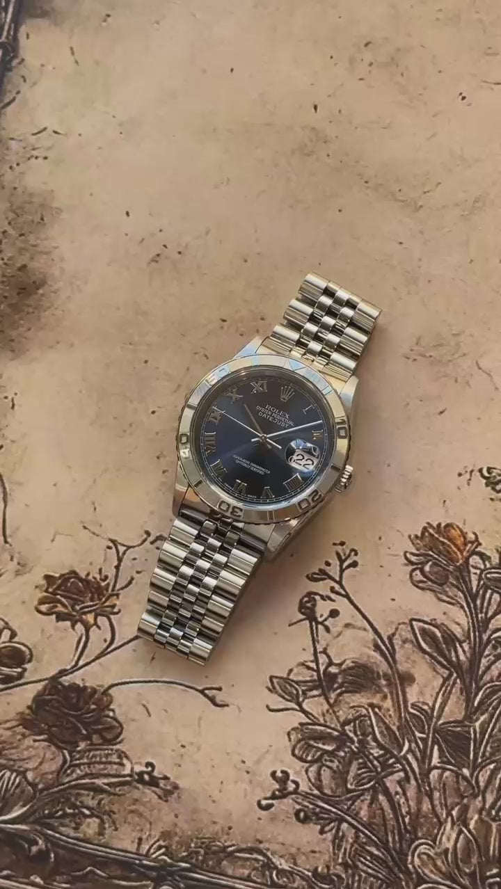Here we have a 36mm Turn O Graph that is in excellent condition for a previously enjoyed watch. Having been enjoyed, it is expected to have minor signs of wear but overall a clean example. The original green Rolex hologram on the case back is still intact, which shows it was a responsibly worn piece. The case does have areas of mirror-like finish which are prone to hairlines (marks visible when with high resolution cameras or if angled at certain lighting). Pictures are part of the description so please refer to the pictures in determining the condition, pictures are of the exact watch being offered.