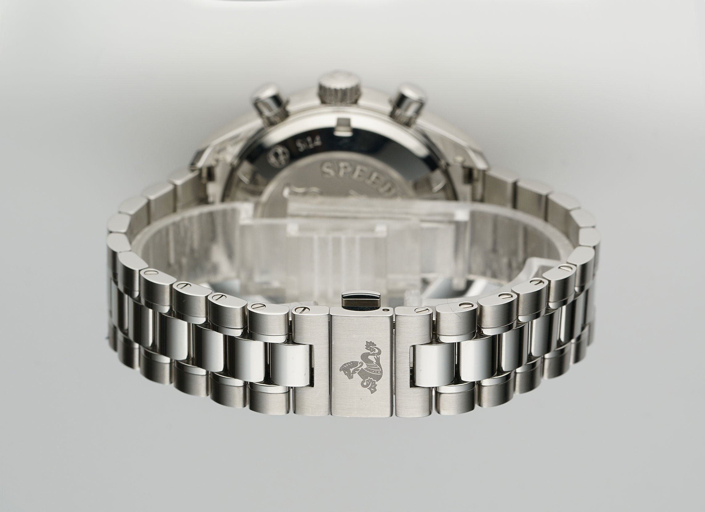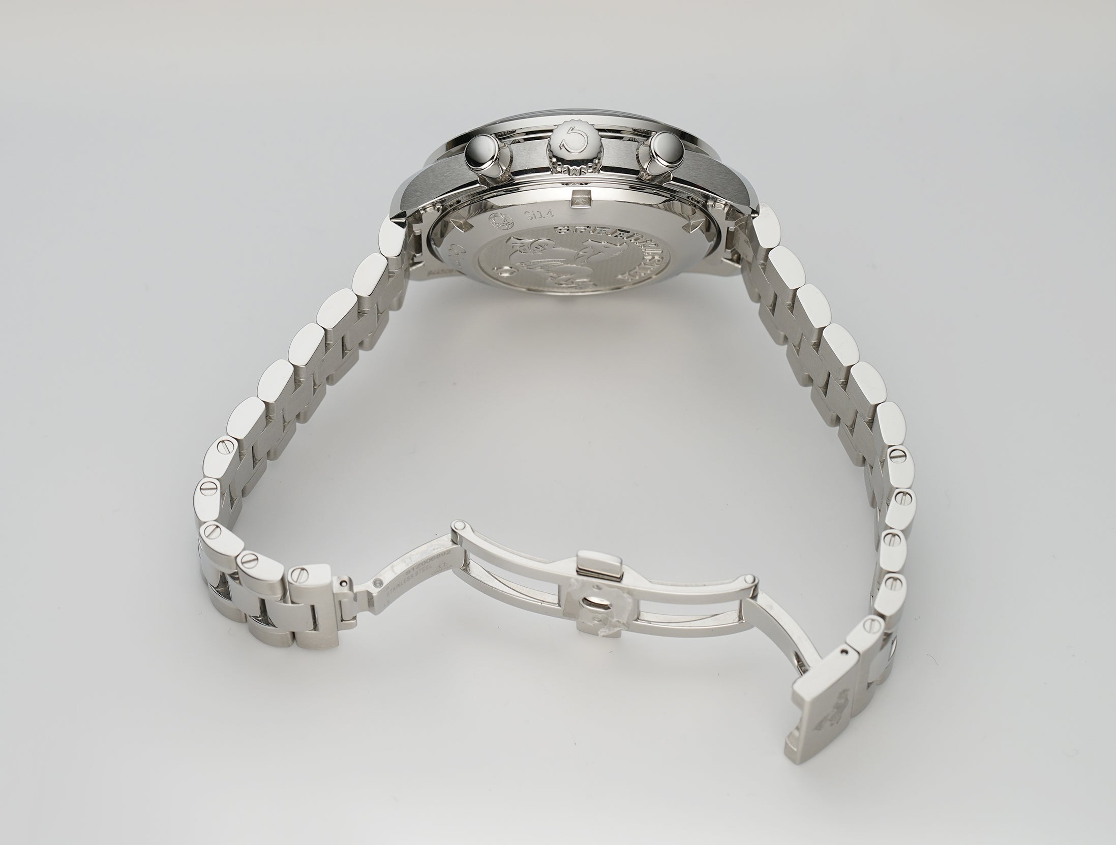 The case is made of stainless steel, displaying a combination of satin and mirror finishes which gives it a bit of contrast. Mounted atop the case is a stainless steel bezel that is equipped with a darker blue tachymeter scaled aluminum bezel insert. It is mounted on the original stainless steel bracelet (full-link) and that is paired with a the original stainless steel double-folding clasp.