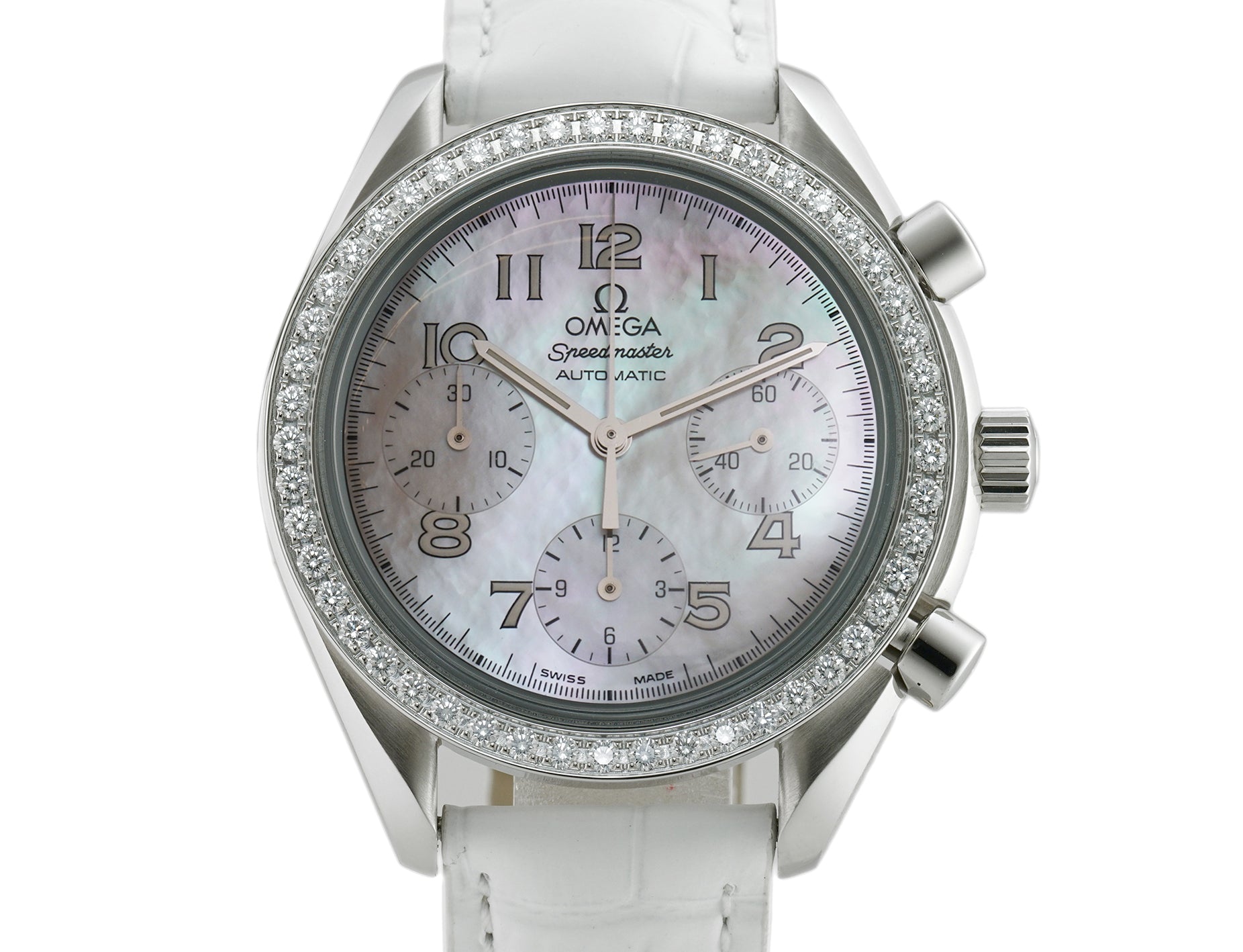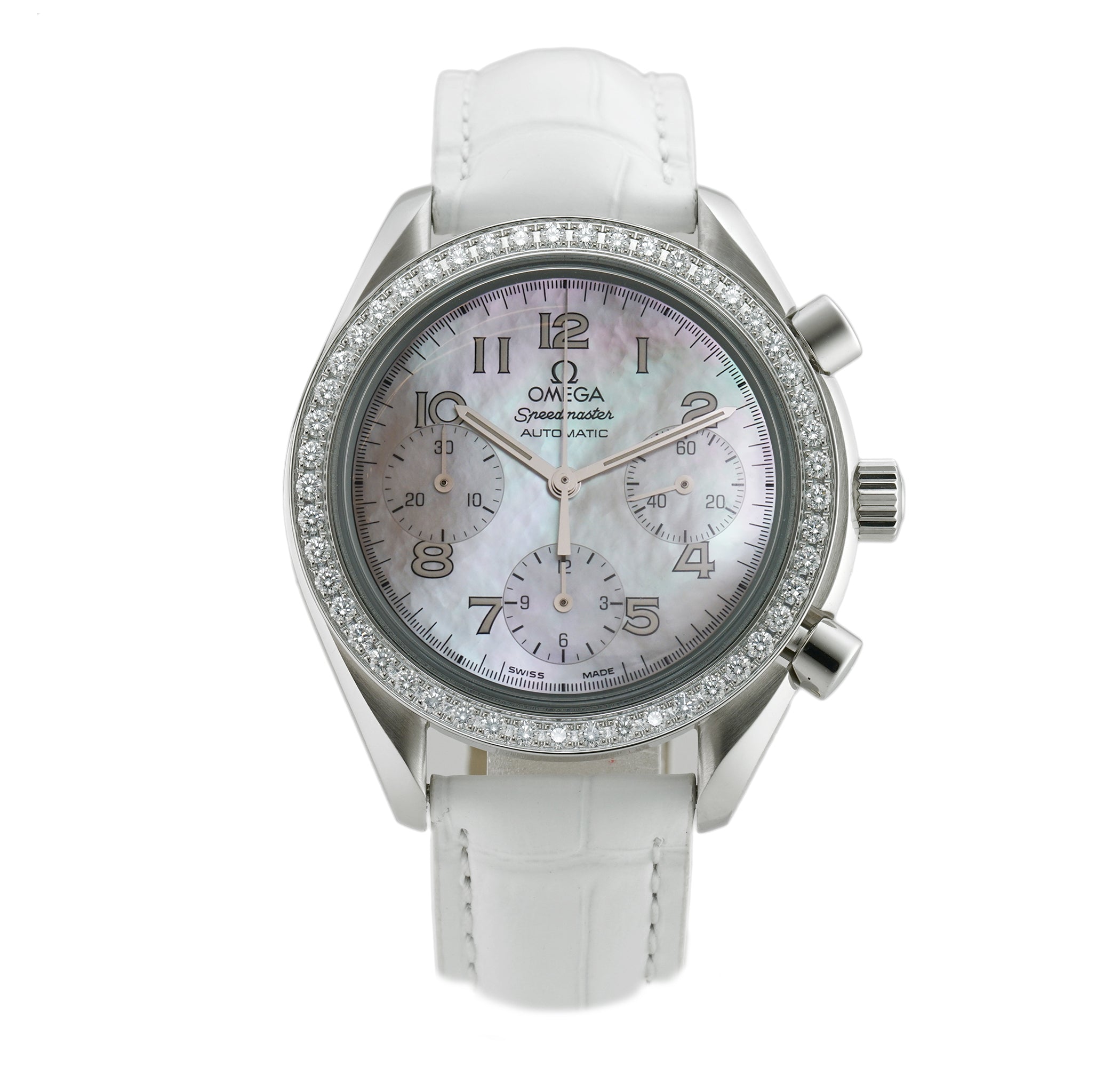 39mm Ladies Reduced Chronograph Diamond Bezel MOP Dial