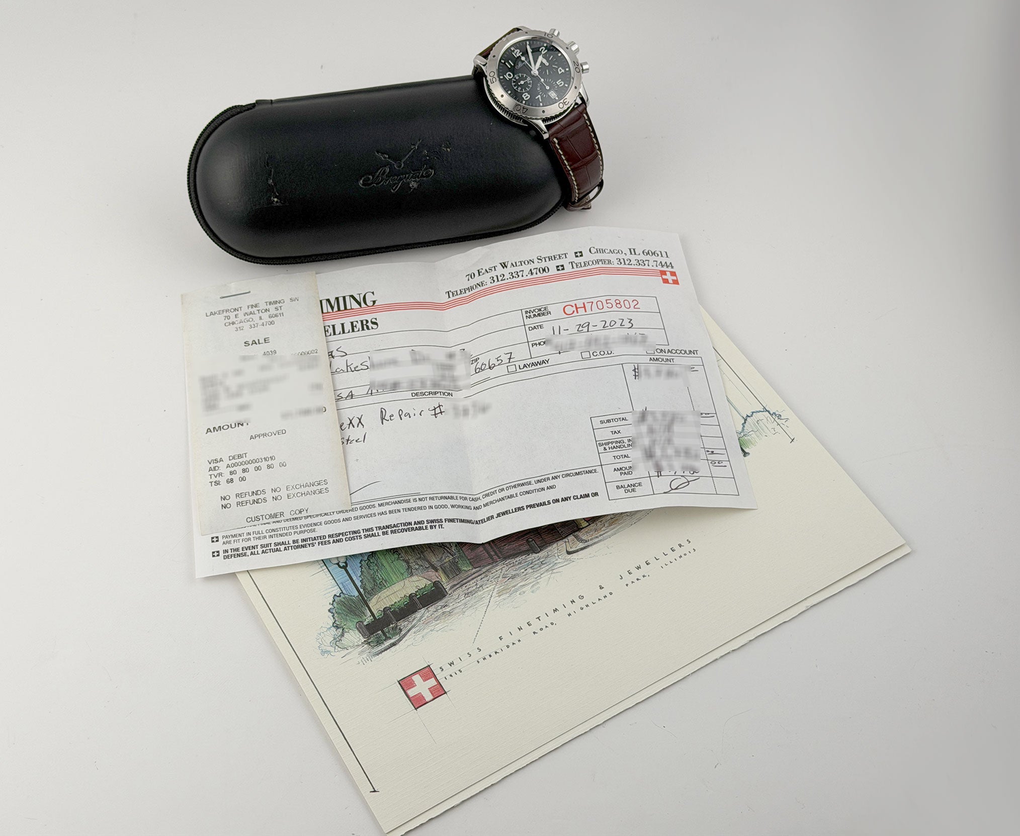 Included with the watch is a Breguet service pouch as well as Breguet service receipts from March of 2023.