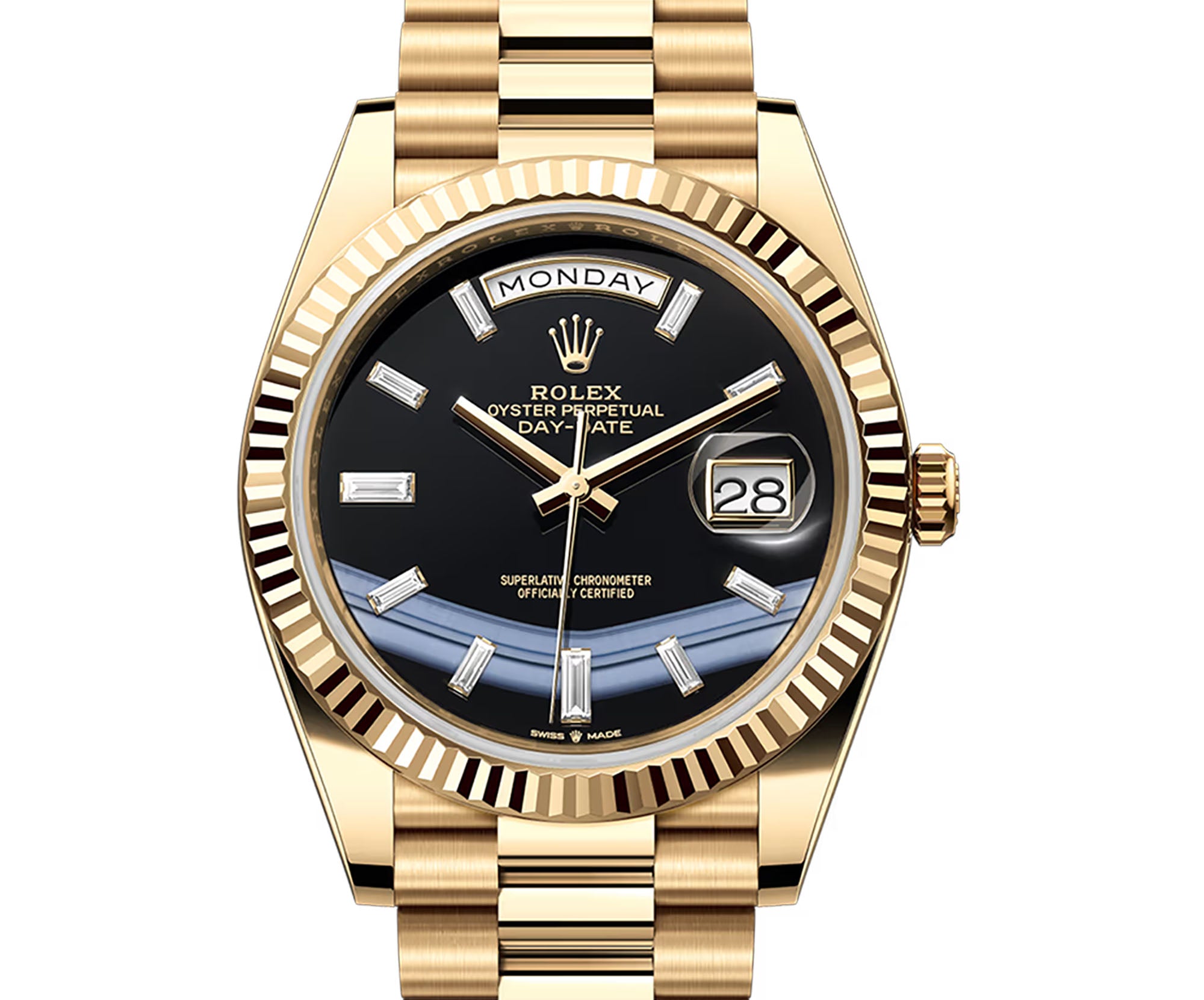 40mm 18k Yellow Gold President ONYX Baguette Diamond Dial