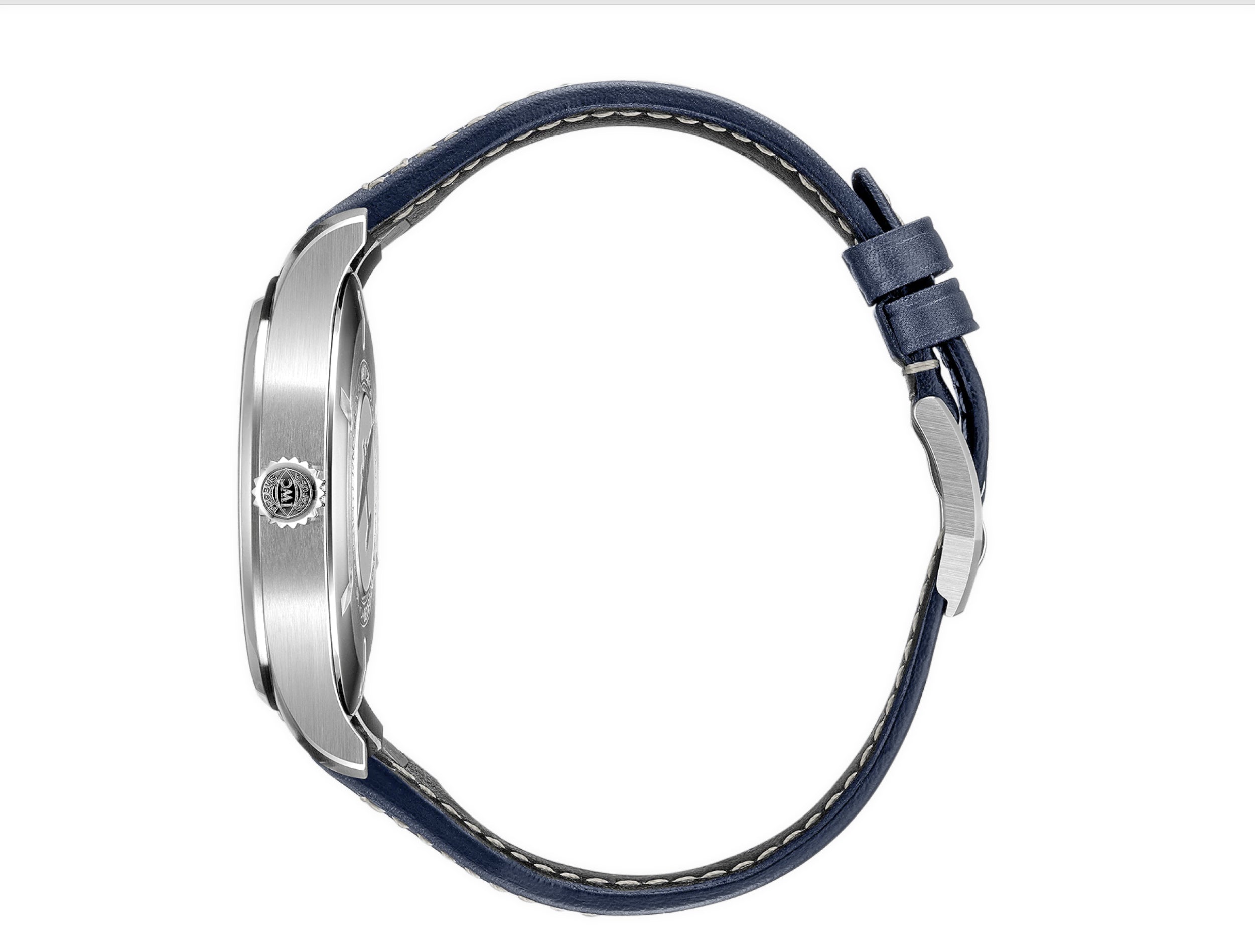 Case is made of stainless steel, most of which is brush-finished, with the exception of the bevels as well as the bezel which are of a high-polished finish. The strap mounted on the watch is a blue leather with light stitching and that is paired with a stainless steel tang buckle. Strap features the EasX-Change system that IWC implemented to make changing straps something anyone can do.