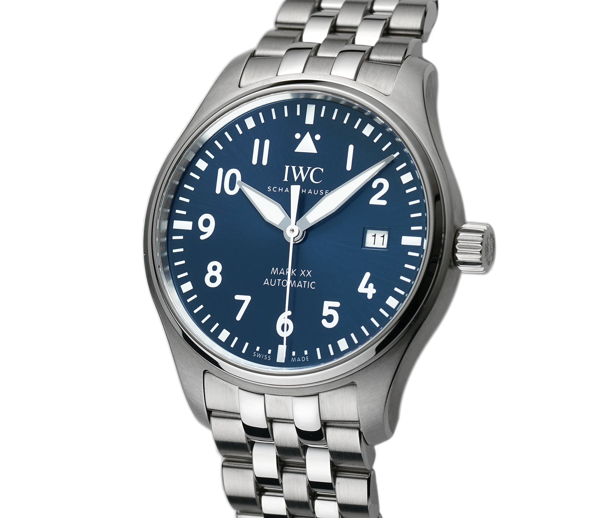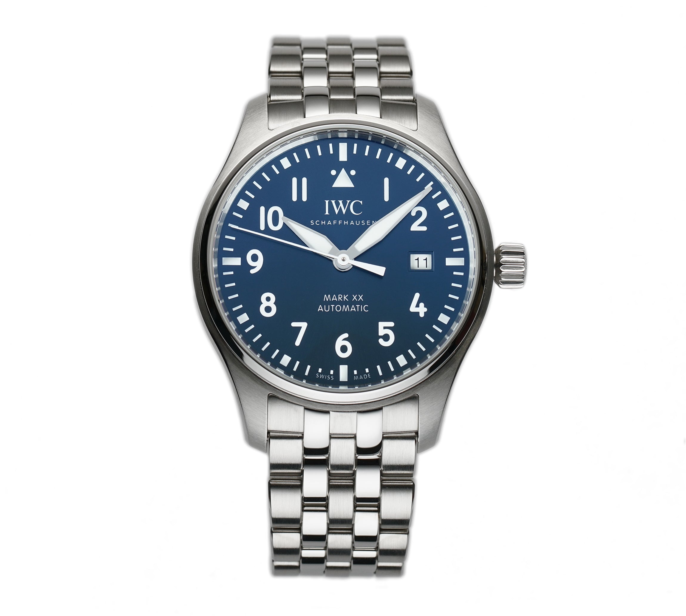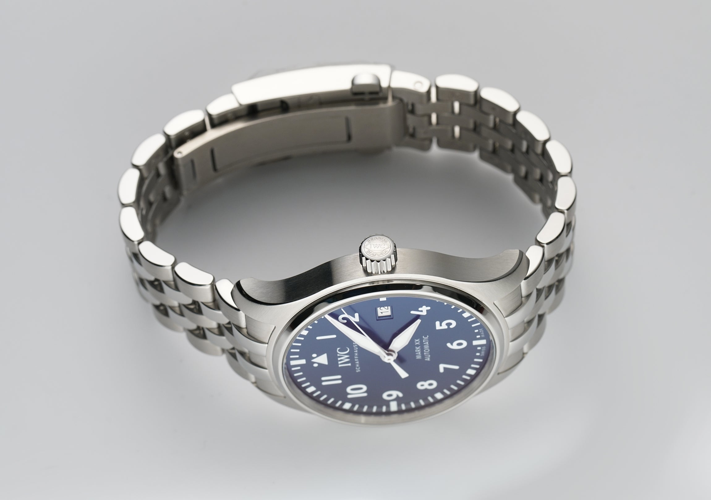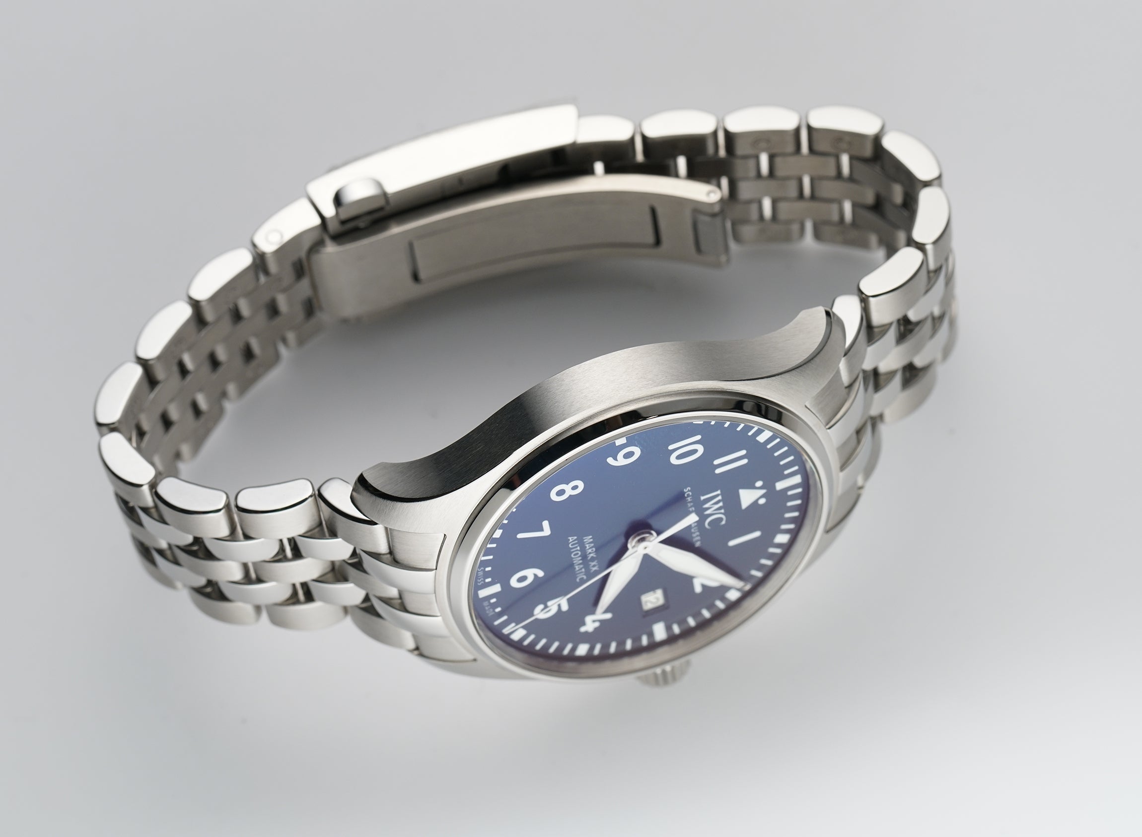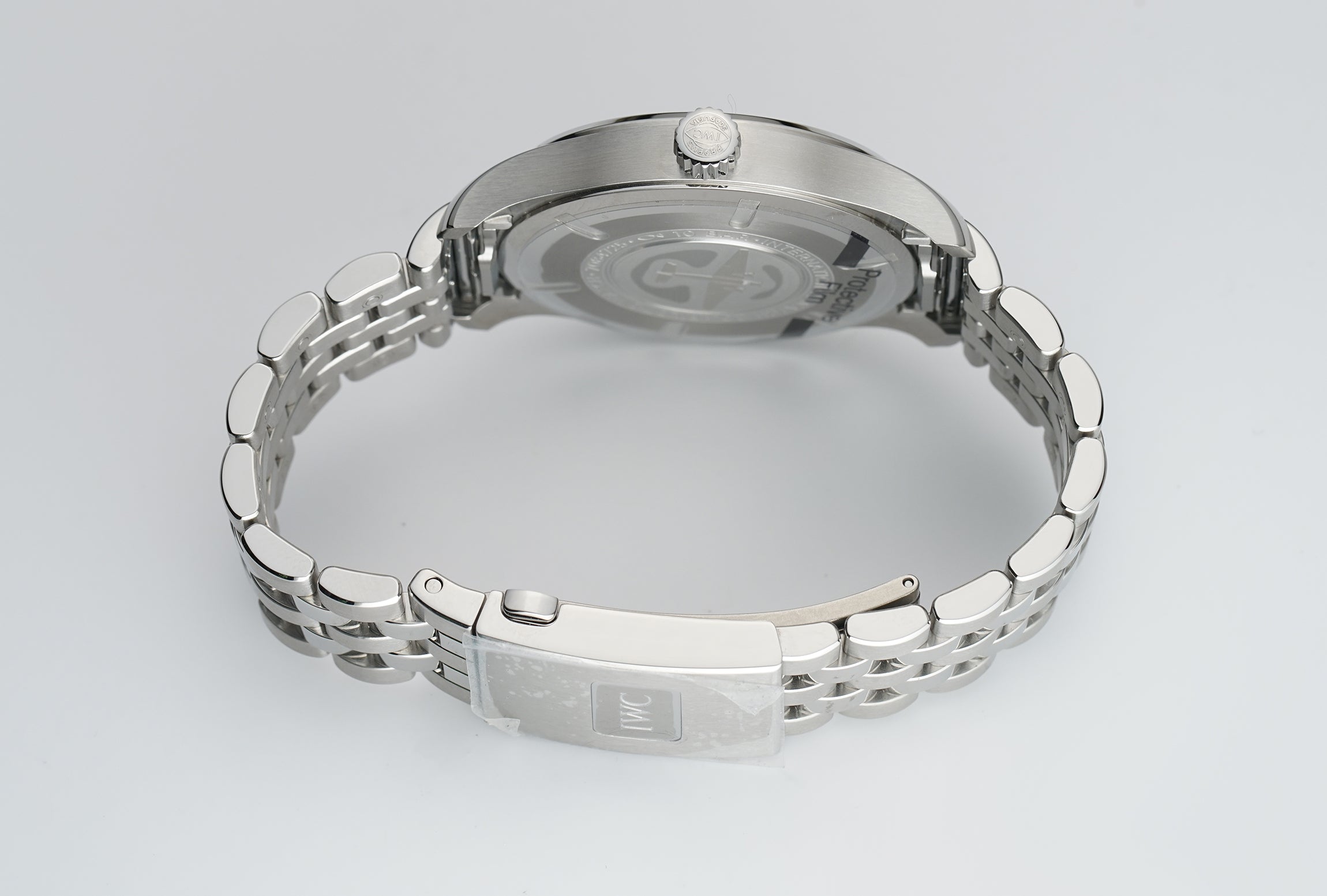 The case and bracelet are made of stainless steel, displaying a combination of both mirror and satin finishes. The bracelet does feature IWC's patented EasX-Change system.