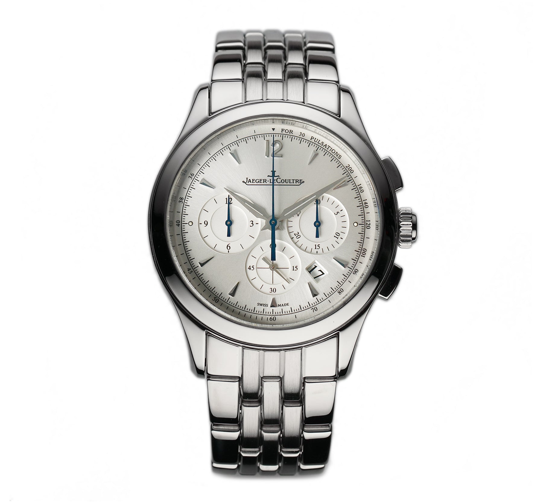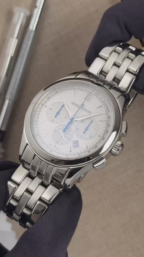 This JLC Master Chrono 153.81.20 is in excellent condition for a previously enjoyed watch. The case does have areas of mirror-like finish which are prone to hairlines (marks visible when with high resolution cameras or if angled at certain lighting). Pictures are part of the description so please refer to the pictures in determining the condition, pictures are of the exact watch being offered.